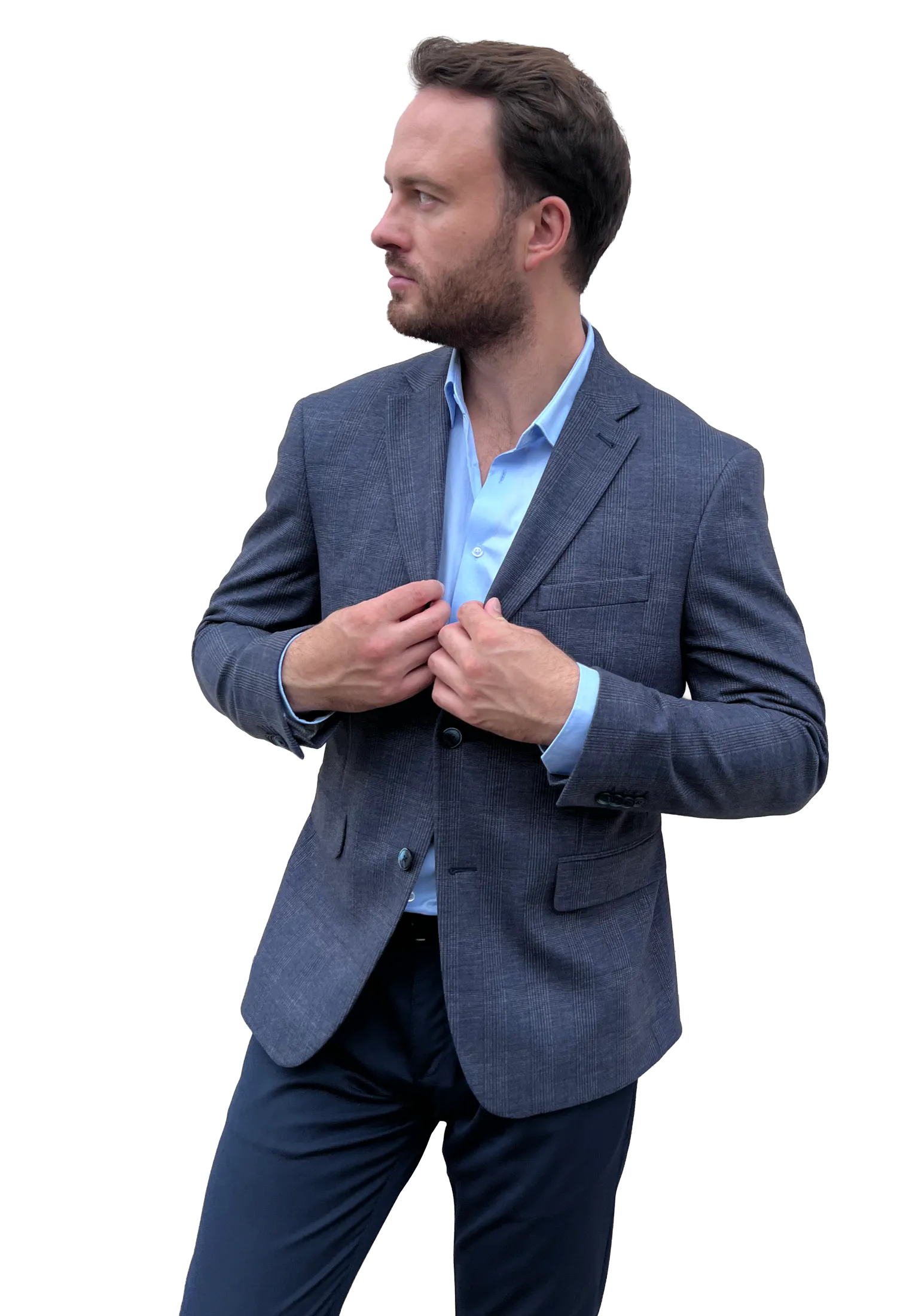 Spodnie męskie w kolorze czarnym, wykonane z tkaniny strukturalnej w bardzo drobny wzorek. Wykonane z miłej w dotyku tkaniny z dodatkiem elastanu. Idealnie pasują do wielu stylizacji.