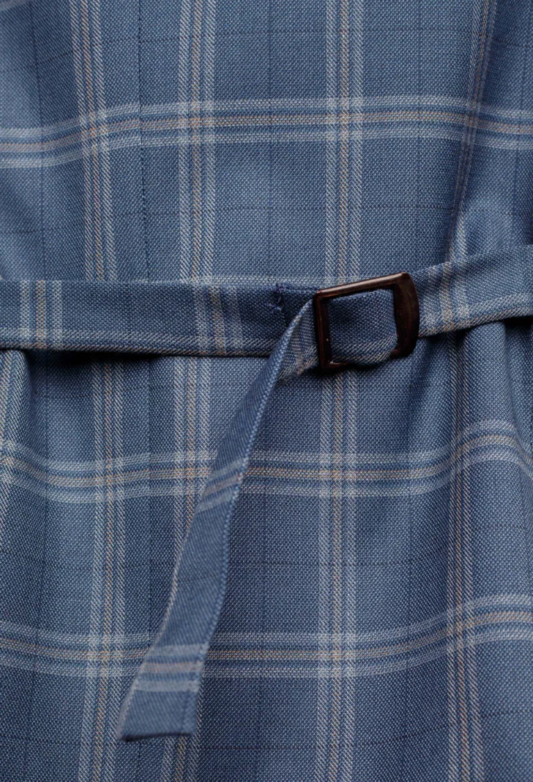 Modna całoroczna kamizelka męska w niebieską w kratę. Model jednorzędowy posiada dwie cięte kieszenie dwuwypustkowe, z tyłu wygodna regulacja na klamerkę. Plecy w kamizelce z tkaniny zasadniczej, od spodu model wykończony jest oddychającą podszewką co zapewnia niezwykły komfort w noszeniu. Kamizelka świetnie sprawdzi się zestawiona z marynarką wizytową jak i sportową. Może być też zestawiona solo ze spodniami chino, pasuje na każdą okazję.