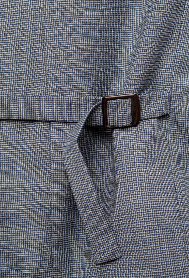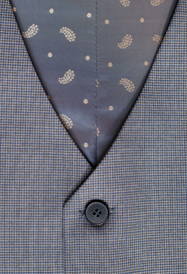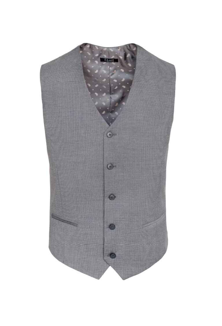 Kamizelka męska w tonacji popielatej, tkanina w drobne pepito. Model jednorzędowy posiada dwie cięte kieszenie dwuwypustkowe, z tyłu wygodna regulacja na klamerkę. Kamizelka stanowi świetną propozycję do miejskich oraz eleganckich stylizacji. Fantastycznie pasuje do wiosenno-letnich zestawień.