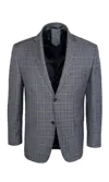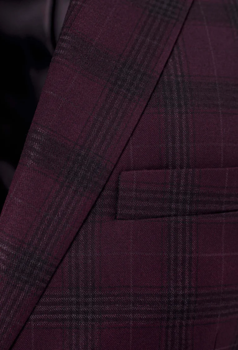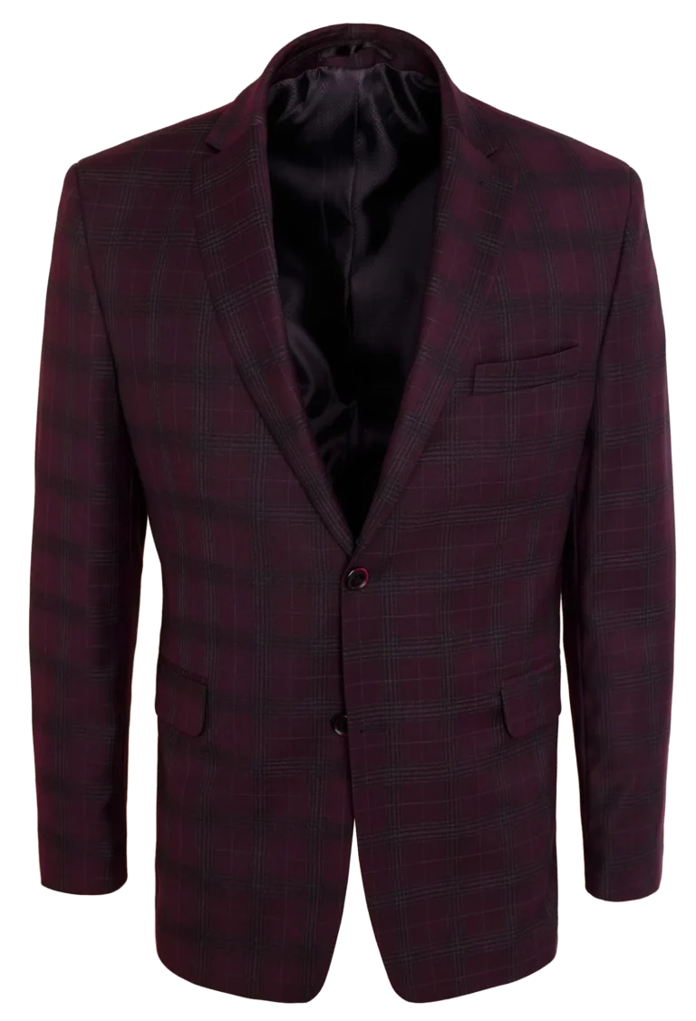Marynarka całoroczna bordowa w szarą kratę, idealna na chłodne dni. Model charakteryzuje się prostymi klapami, dwoma kieszeniami z patkami, kieszonką piersiową, z tyłu dwa rozcięcia. Ten model świetnie komponuje się ze spodniami klasycznymi oraz sportowymi. Świetnie nadaje się na rodzinne spotkania jak i do pracy.