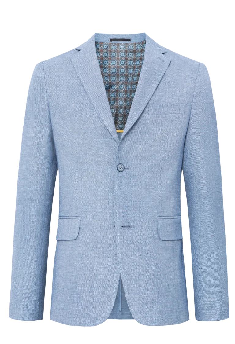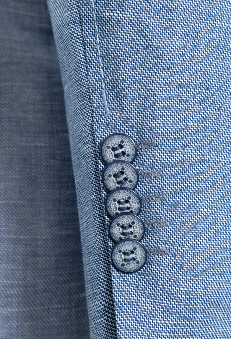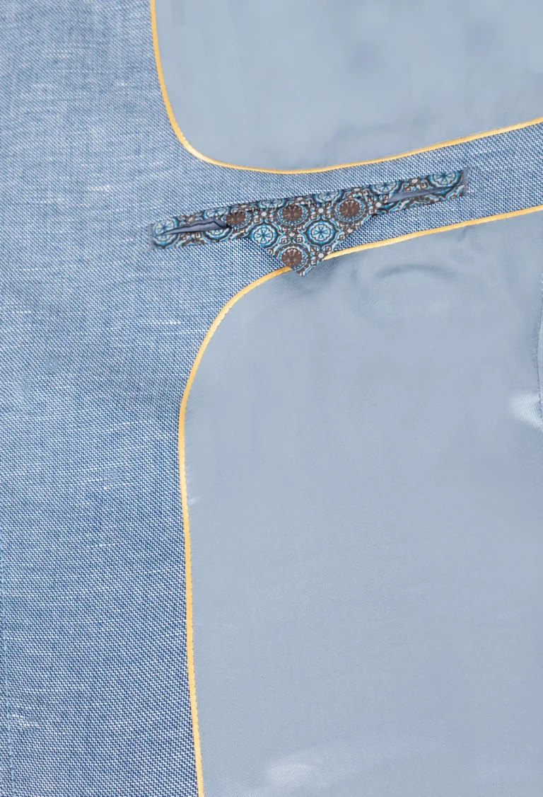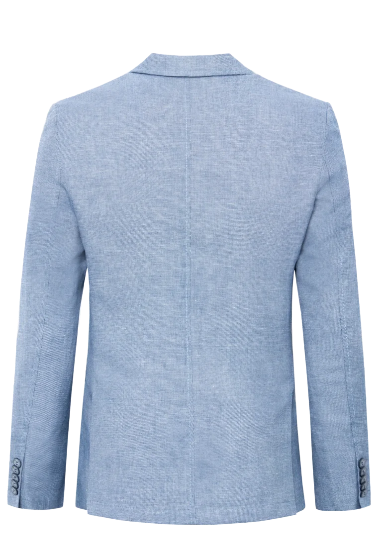 Typowo letnia marynarka w kolorze jasno – niebieskim z domieszką lnu. Super lekki model utrzymany w stylu casualowym.