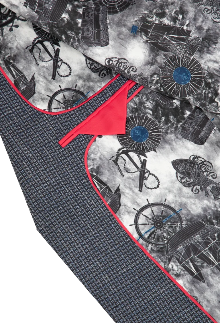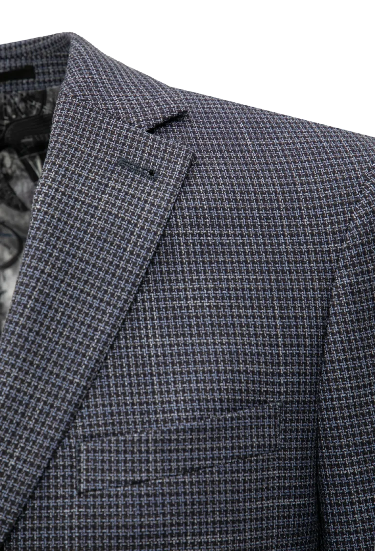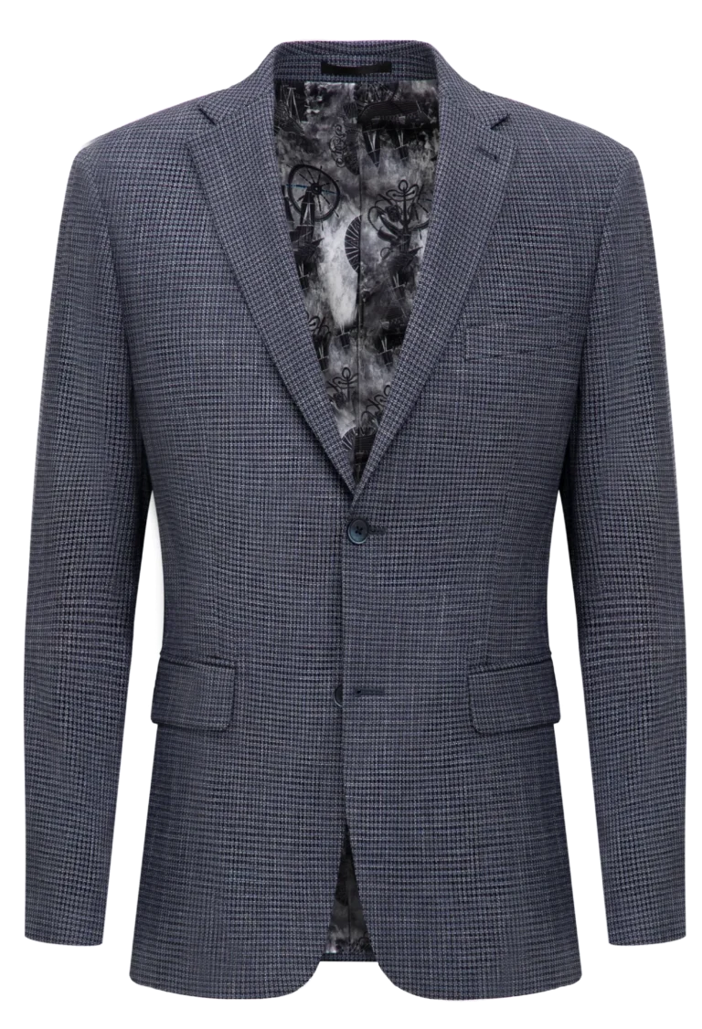 Klasyczna marynarka, w kolorze ciemnoniebieskiem – klasyczny wzór pepita. Marynarka posiada jednorzędowe zapięcie na dwa guziki oraz klasyczne klapy. Ciekawa propozycja na każdą porę roku.