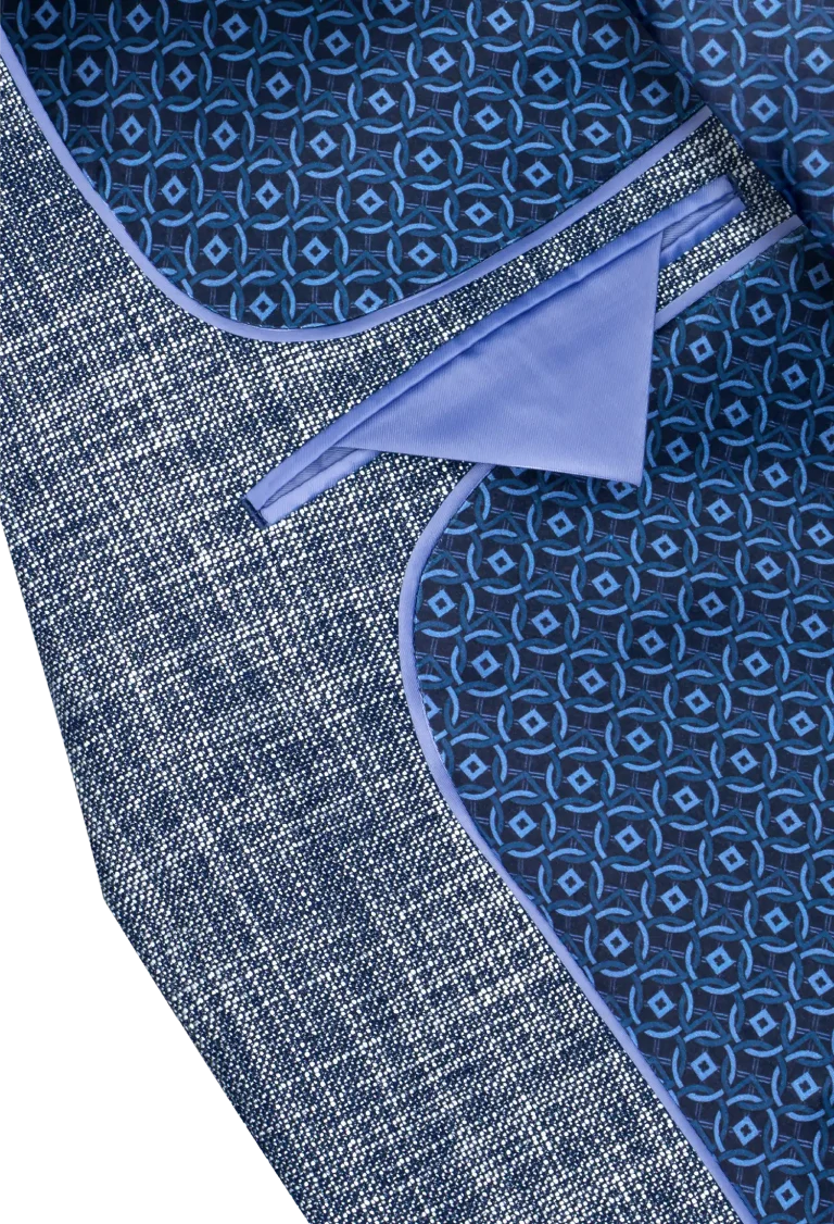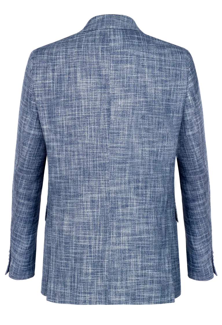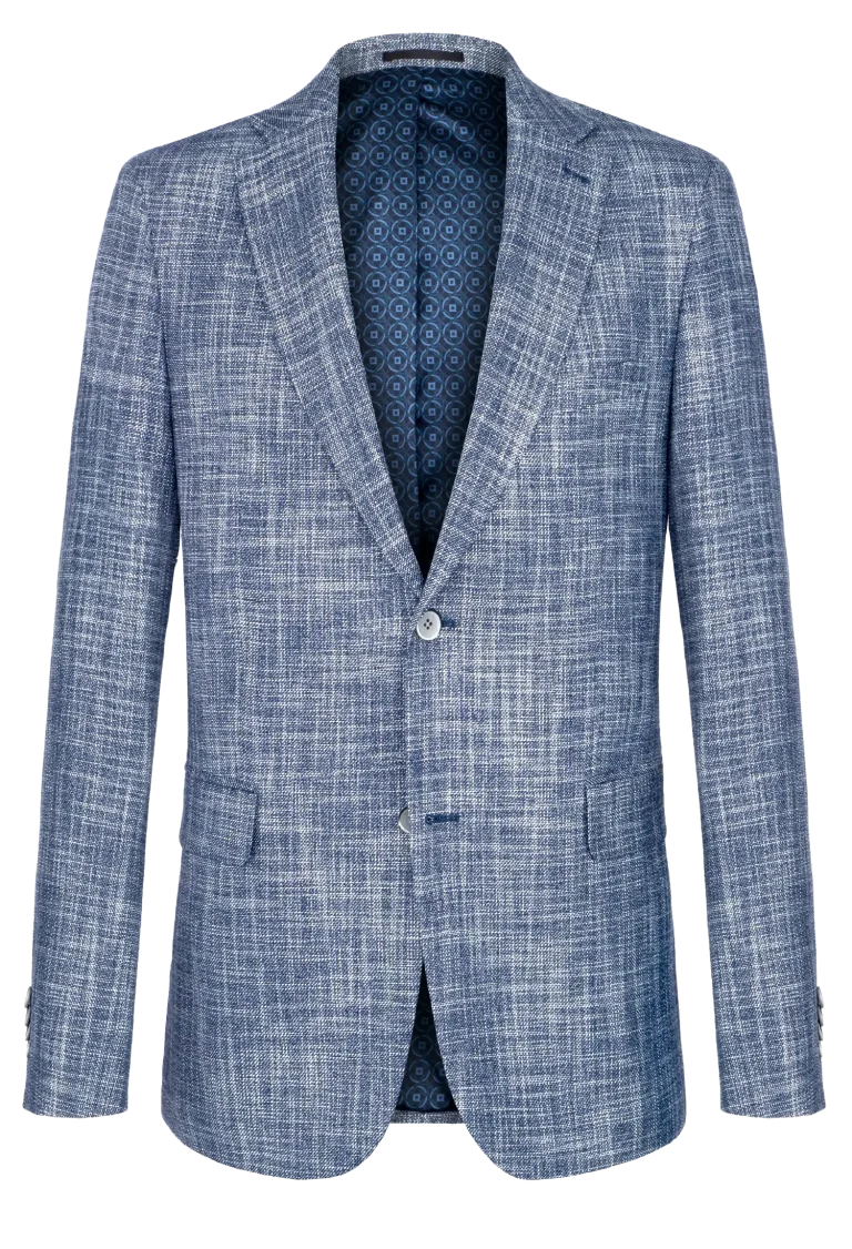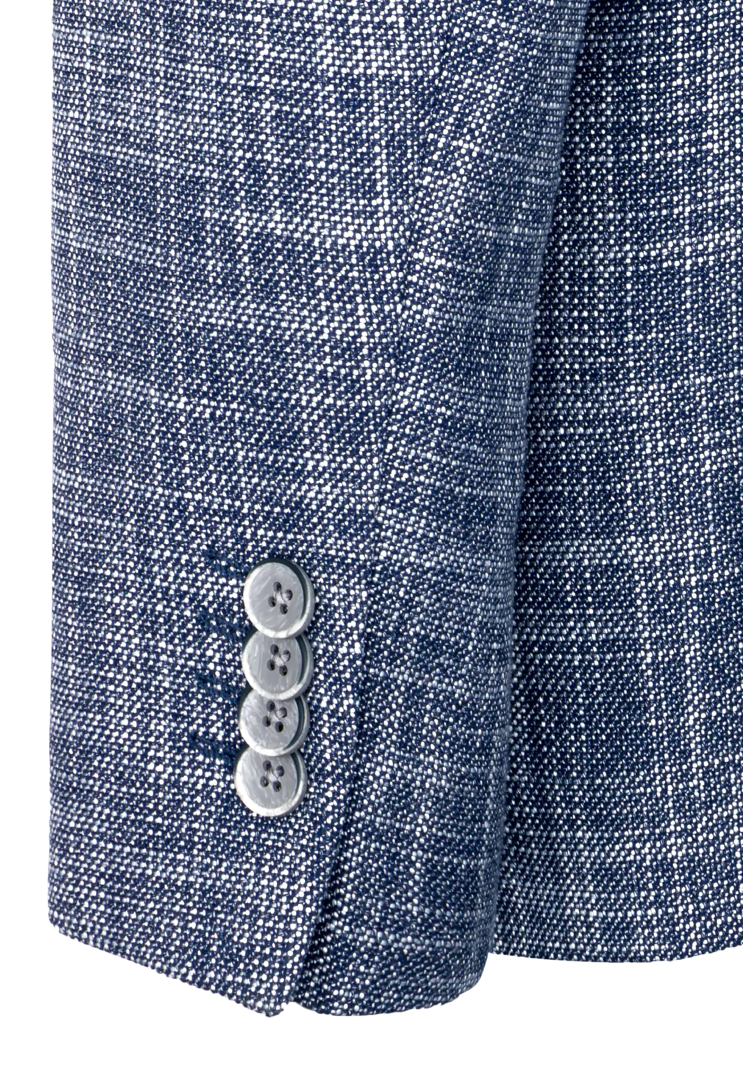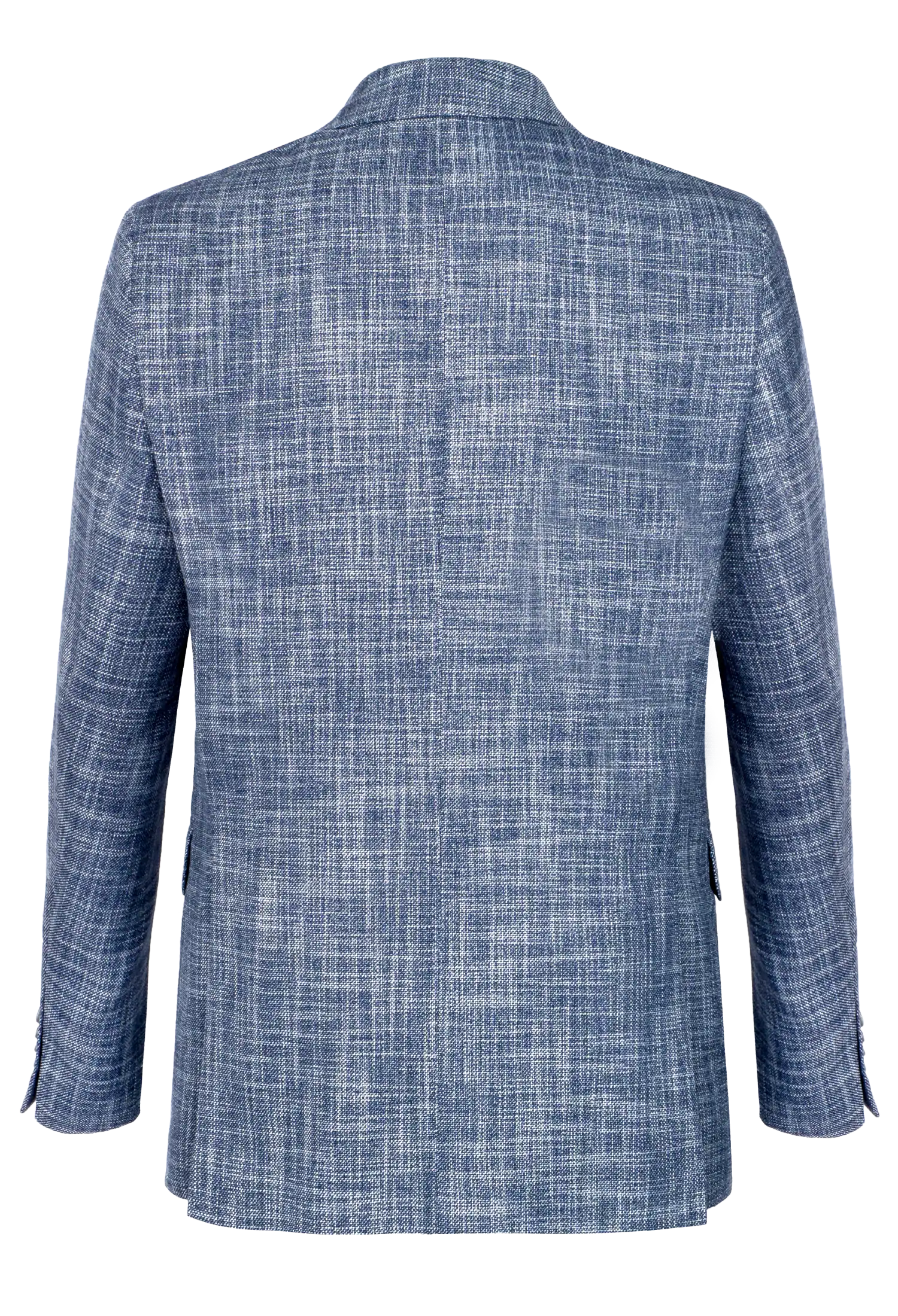 Klasyczna męska marynarka w niebieskobiałym kolorze. Wykonana z wysokiej jakości tkaniny. Materiał o ciekawym splocie, który dodaje całości charakteru. Klasyczny krój gwarantuje komfort i swobodę ruchów, jednocześnie podkreślając męską sylwetkę. Doskonały wybór zarówno do biura, jak i na mniej formalne okazje.