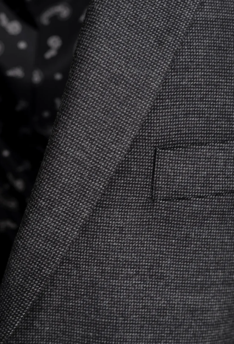 Marynarka w kolorze popielatym w delikatny klasyczny mikrowzór, lekko dopasowana. Bardzo miła w dotyku. Idealna na chłodniejsze dni.