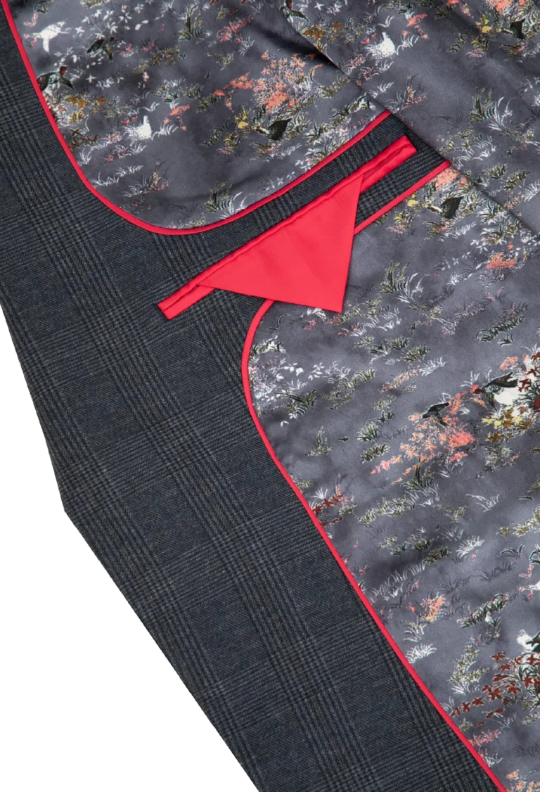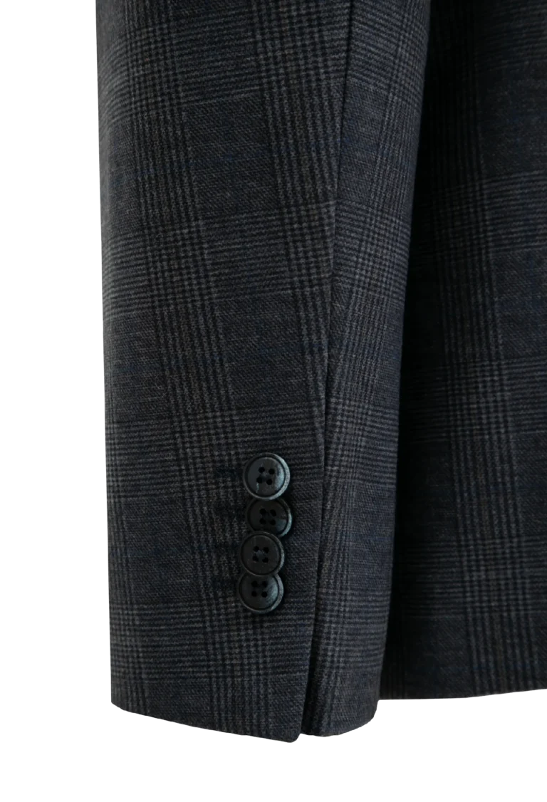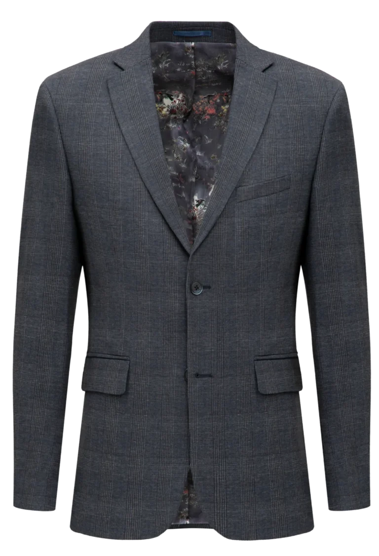 Klasyczna marynarka, w kolorze szaroniebieskim w delikatną kratę. Marynarka posiada jednorzędowe zapięcie na dwa guziki i klasyczne klapy. Ciekawa propozycja na każdą porę roku.