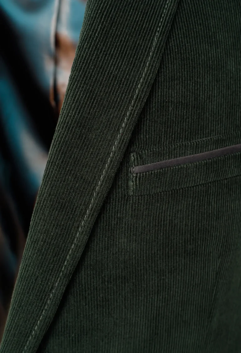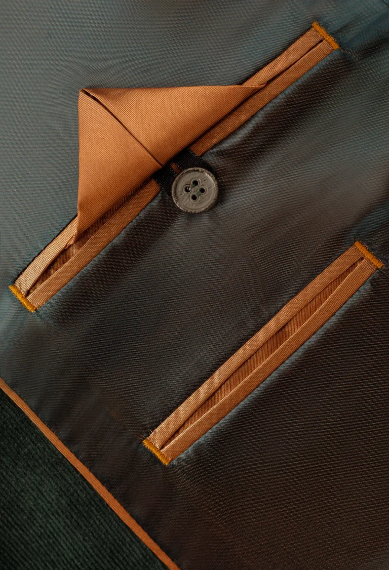 Sztruks to ponadczasowy materiał, który towarzyszy nam od lat. Jest tkaniną bawełnianą z dodatkiem lycry, dzięki której marynarka w użytkowaniu z łatwością dopasowuje się do sylwetki i powoduje swobodne ruchy. Marynarka sztruksowa jest lekka, trwała, łatwa w pielęgnacji. Dzięki tym cechom jest ulubionym ubiorem dla wielu Panów. W marynarce są dwa rozcięcia z tyłu. Wykończenia przy kieszeniach oraz butonierka wykonane są z ekologicznej skórki.