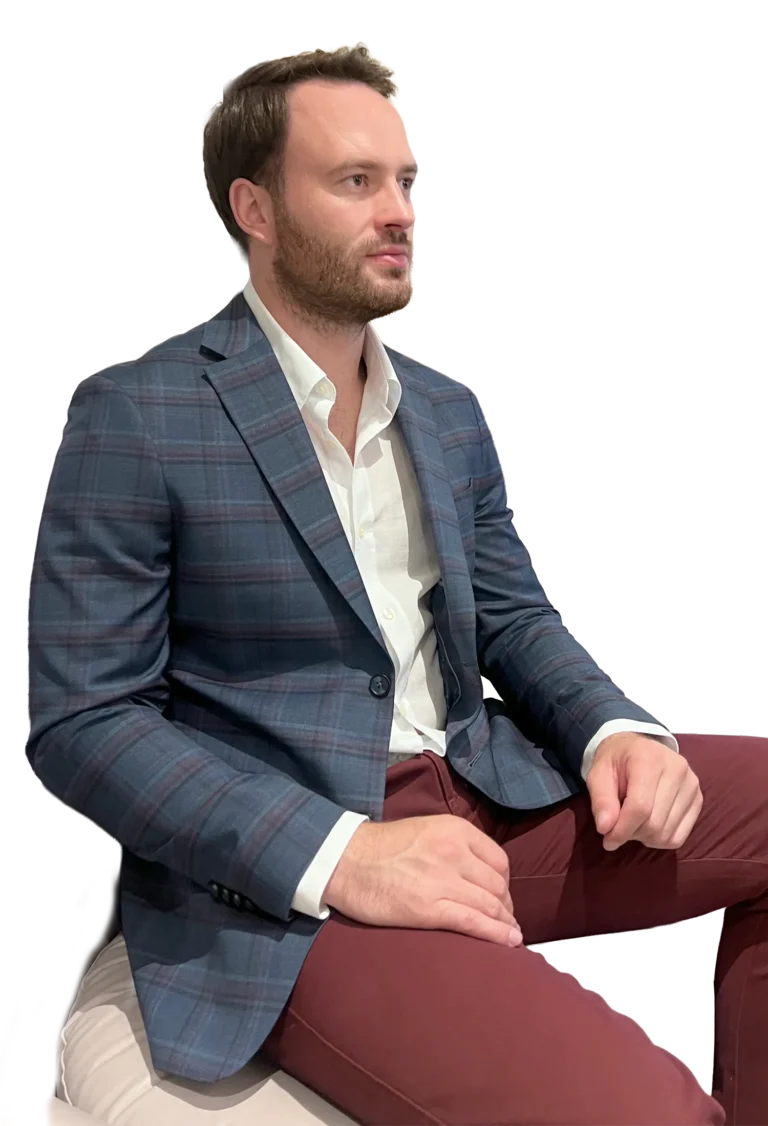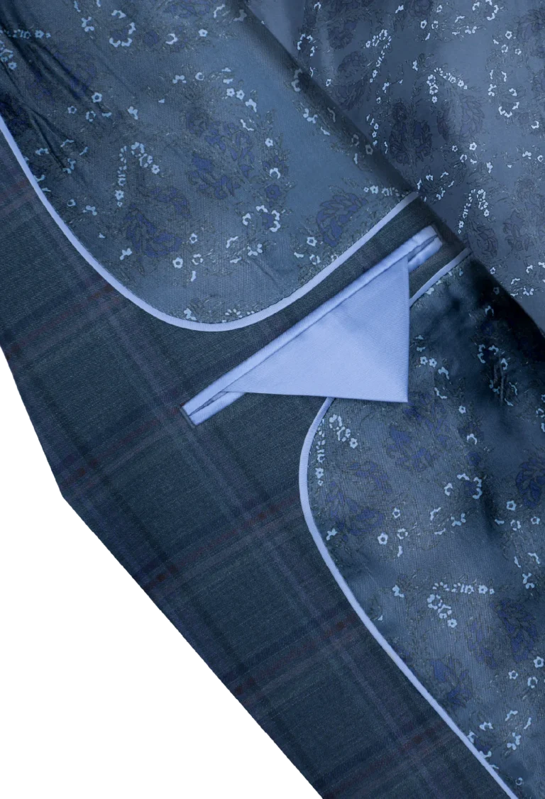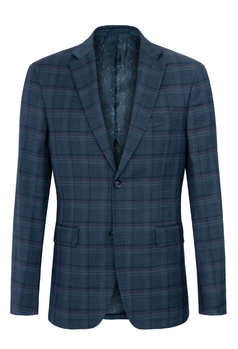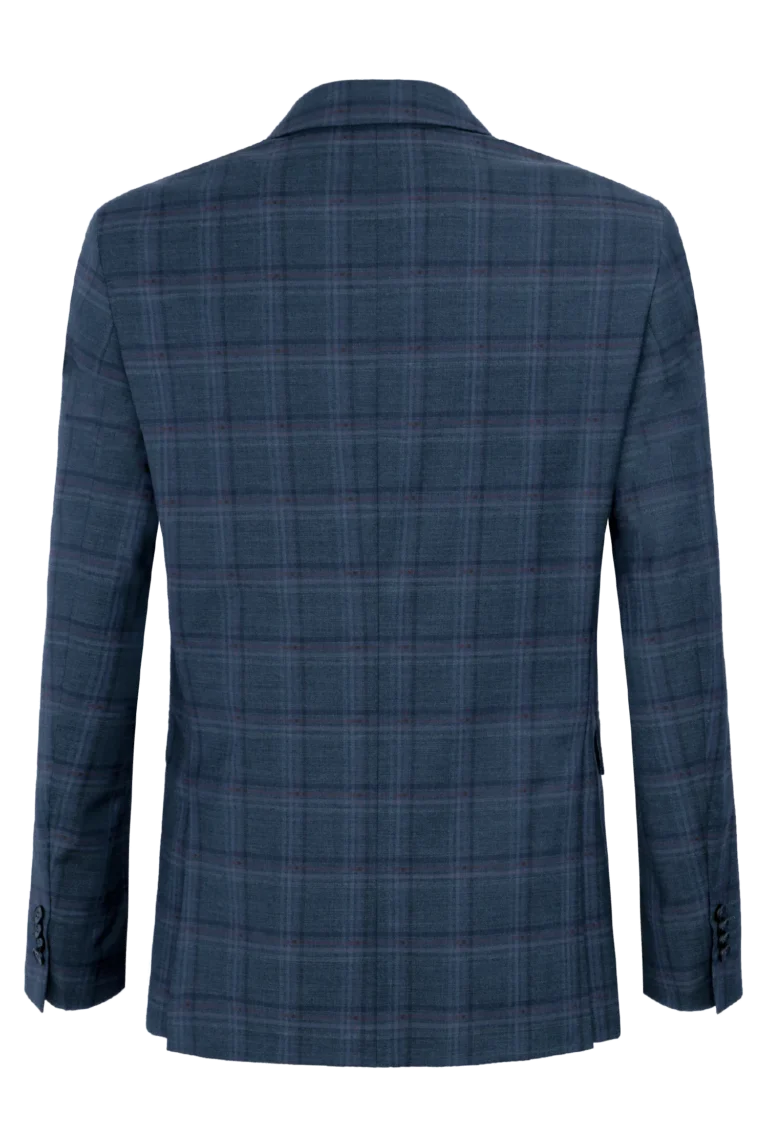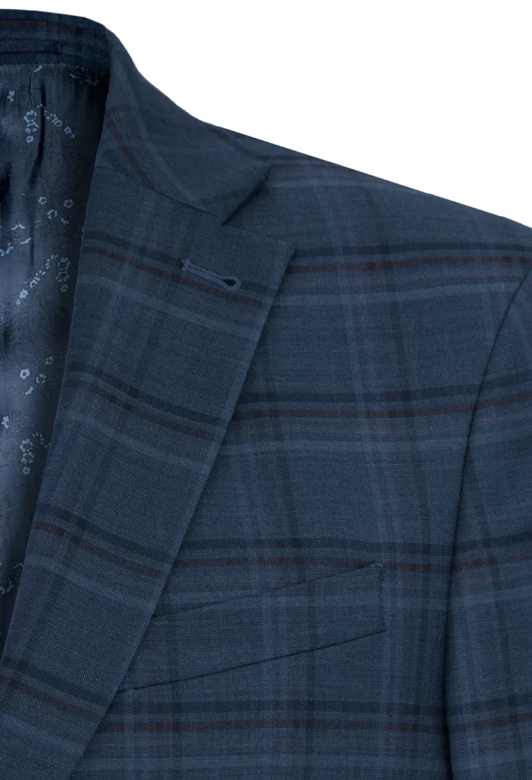 Klasyczna męska marynarka w eleganckim granatowym kolorze z delikatnym wzorem w kratkę. Wykonana z wysokiej jakości tkaniny z domieszką wełny 29% — zapewnia komfort noszenia, trwałość i nienaganny wygląd przez cały dzień. Elegancka i uniwersalna – pasuje do stylizacji biznesowych i codziennych.