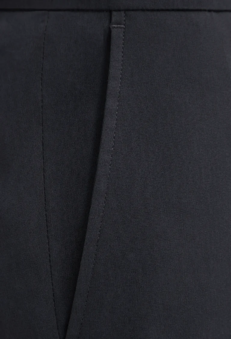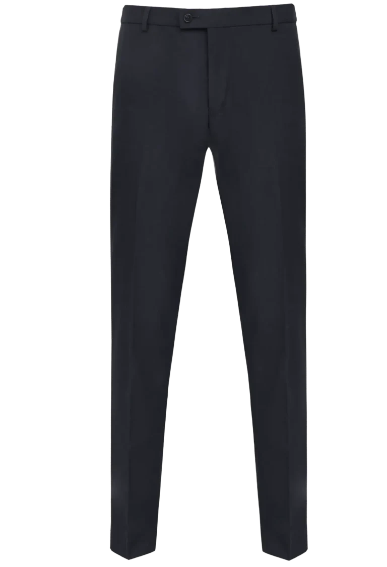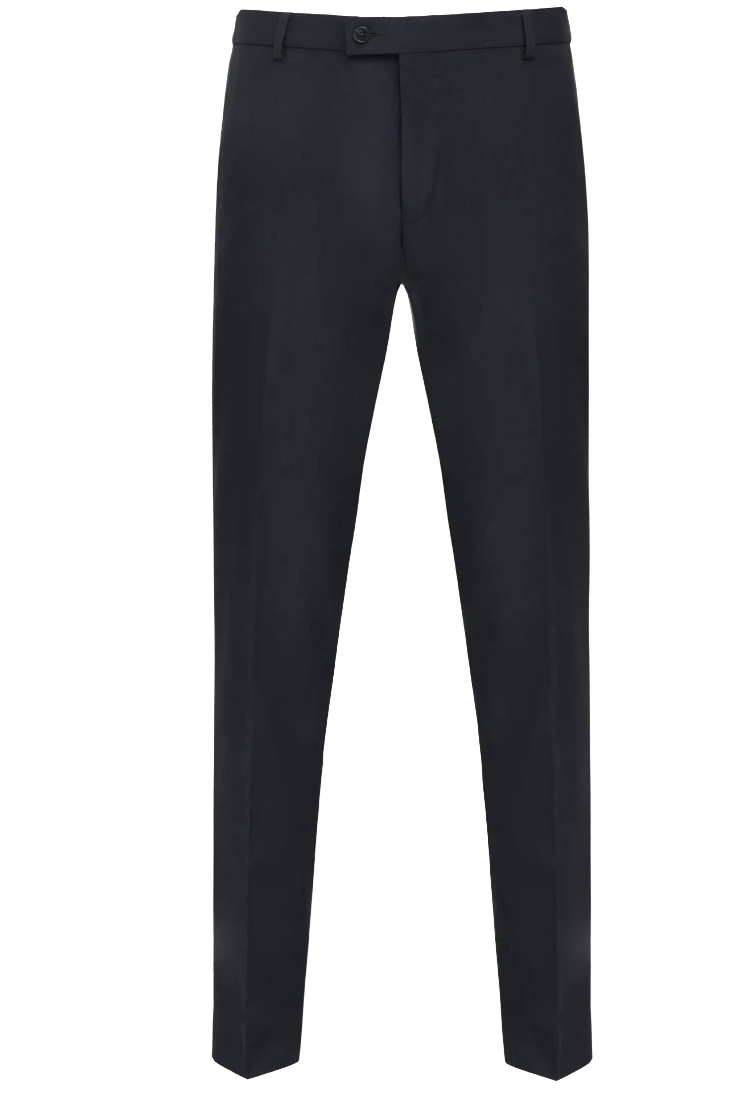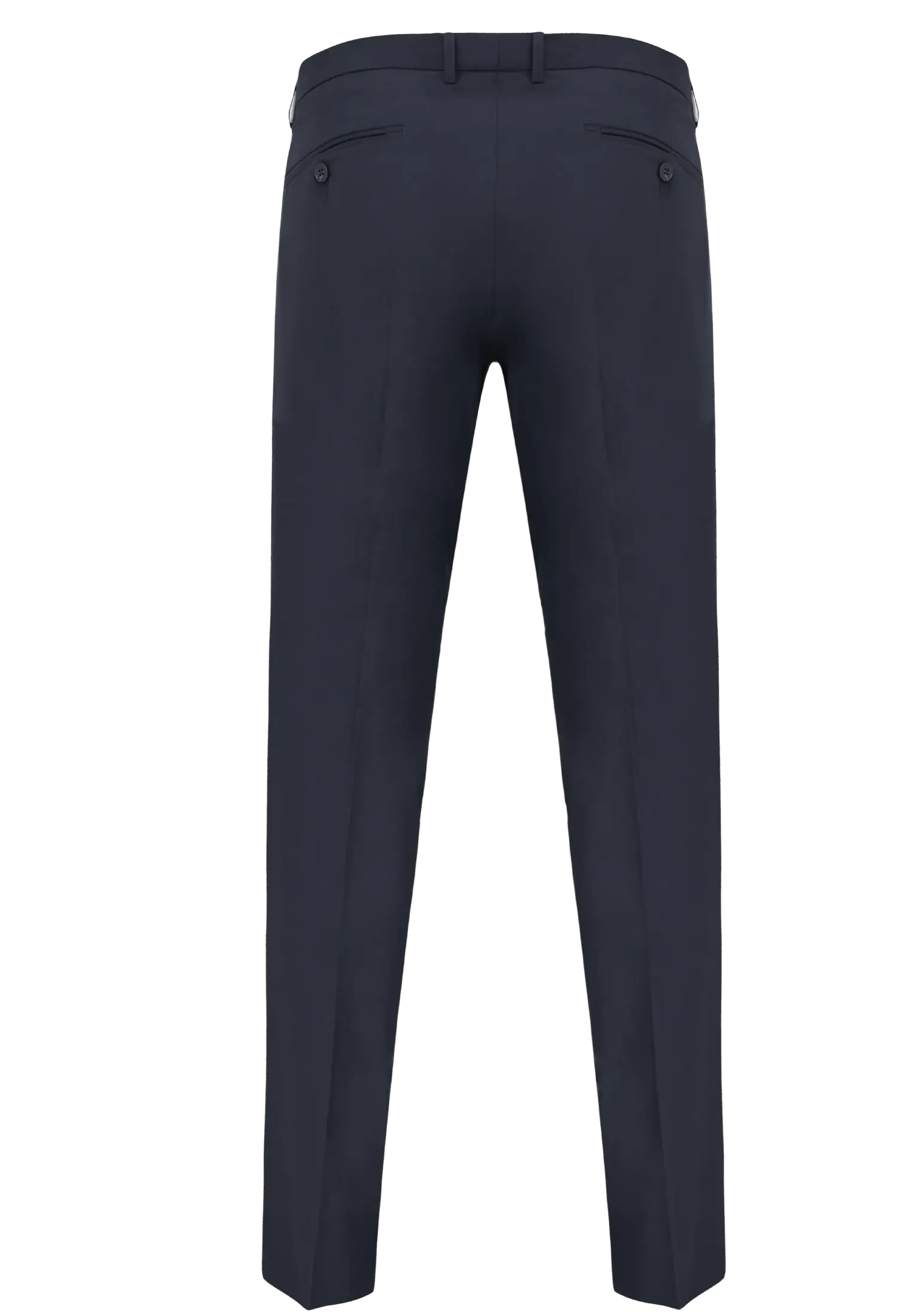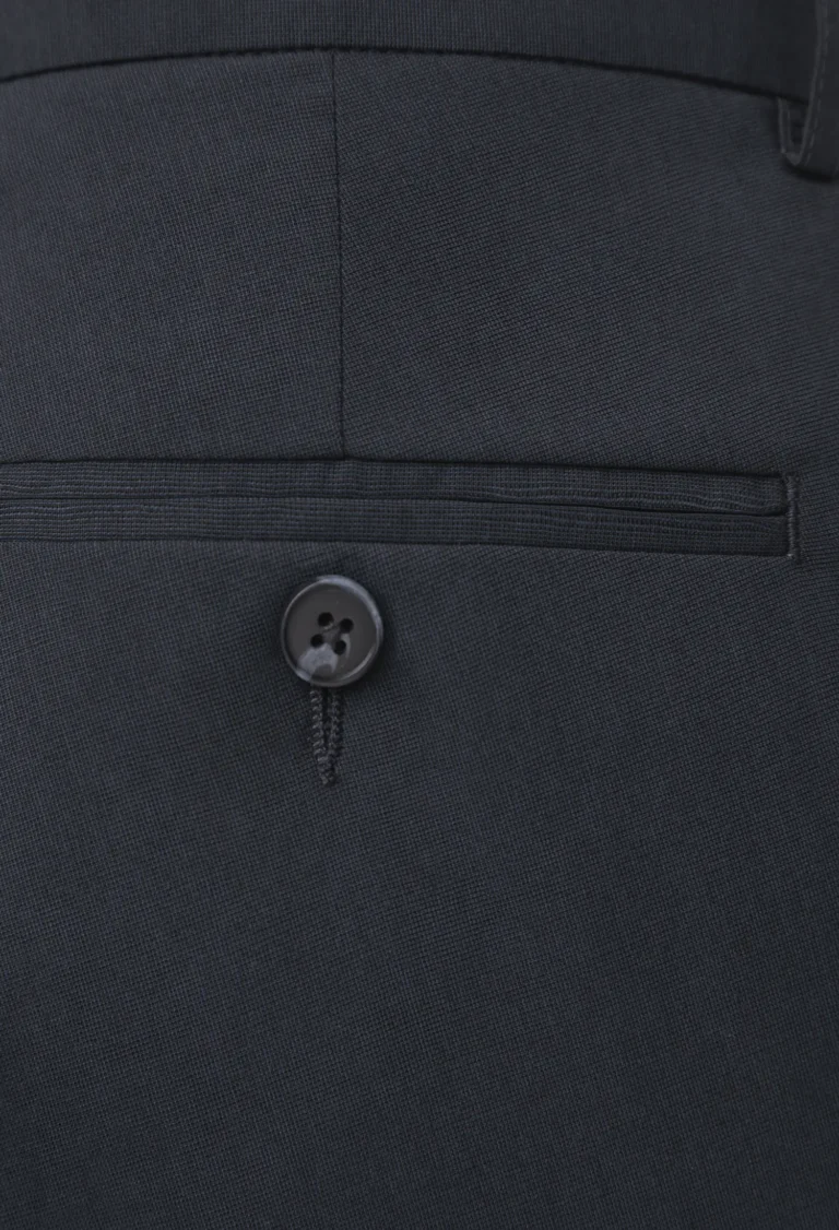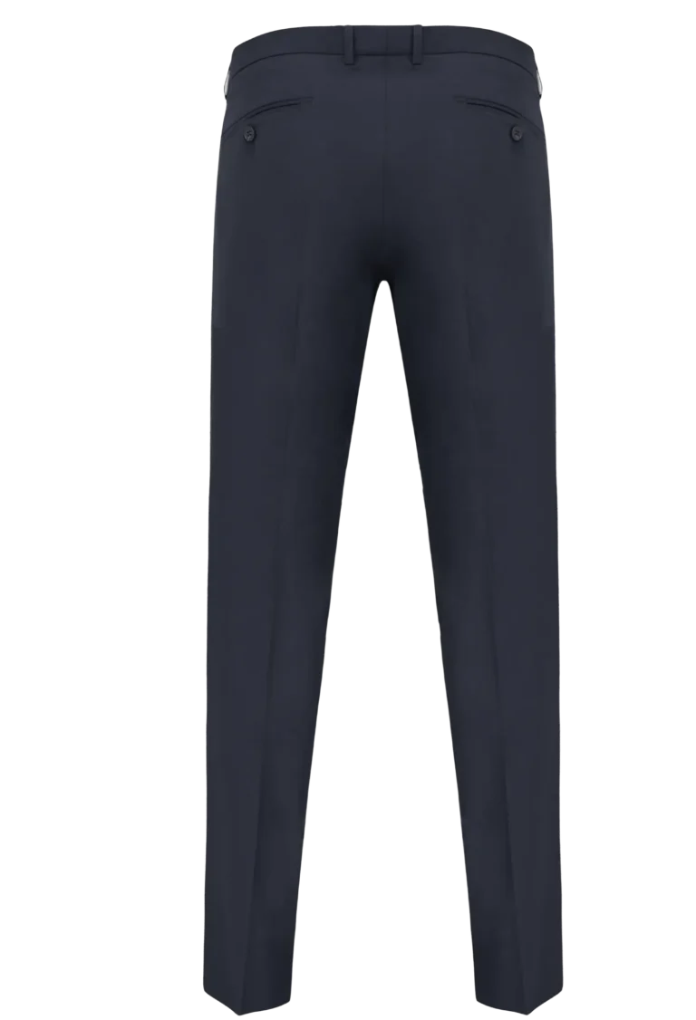 Eleganckie spodnie garniturowe w kolorze czarnym to niezbędny element męskiej garderoby. Wykonane z tkaniny z dużą ilością wełny 66% – gwarantują komfort noszenia, odpowiednią przewiewność oraz trwałość materiału. Posiadają w przodzie dwie kieszenie skośne z tyłu dwie kieszenie cięte, zaprasowane na kant z kolanówką, pasek z gurtem.