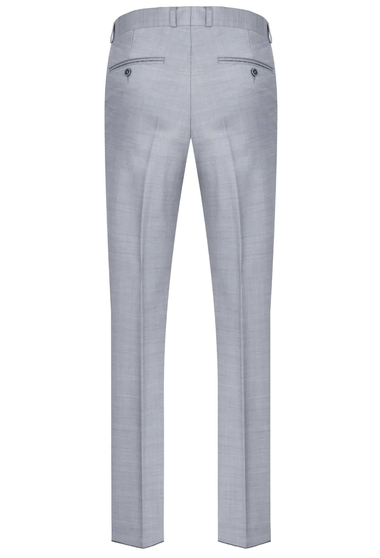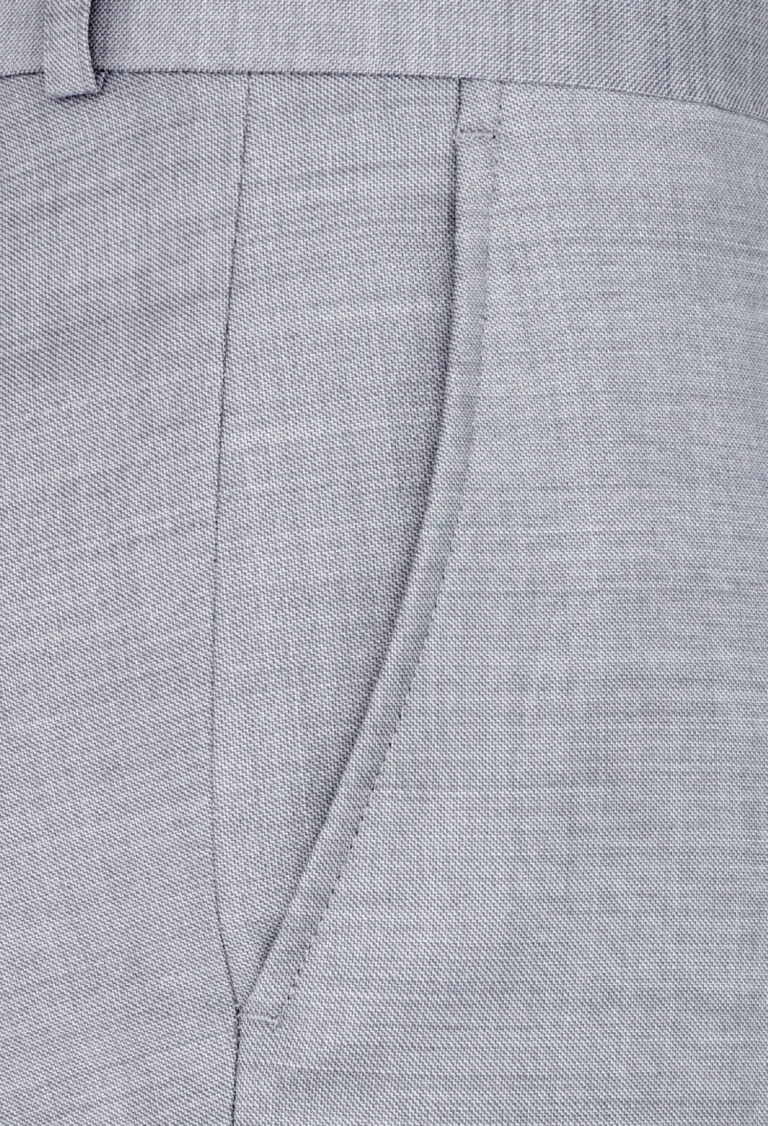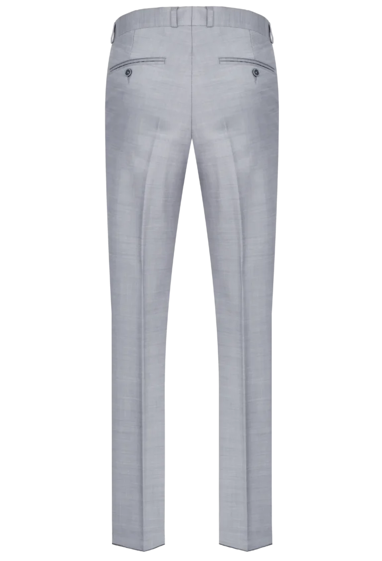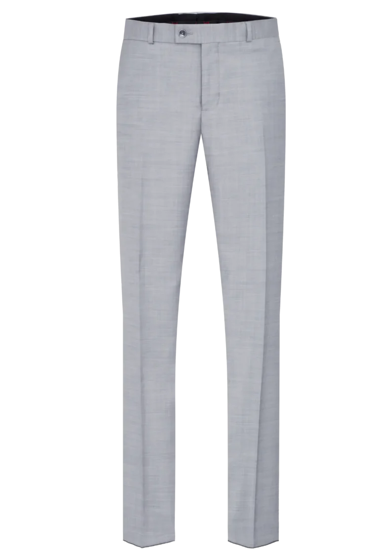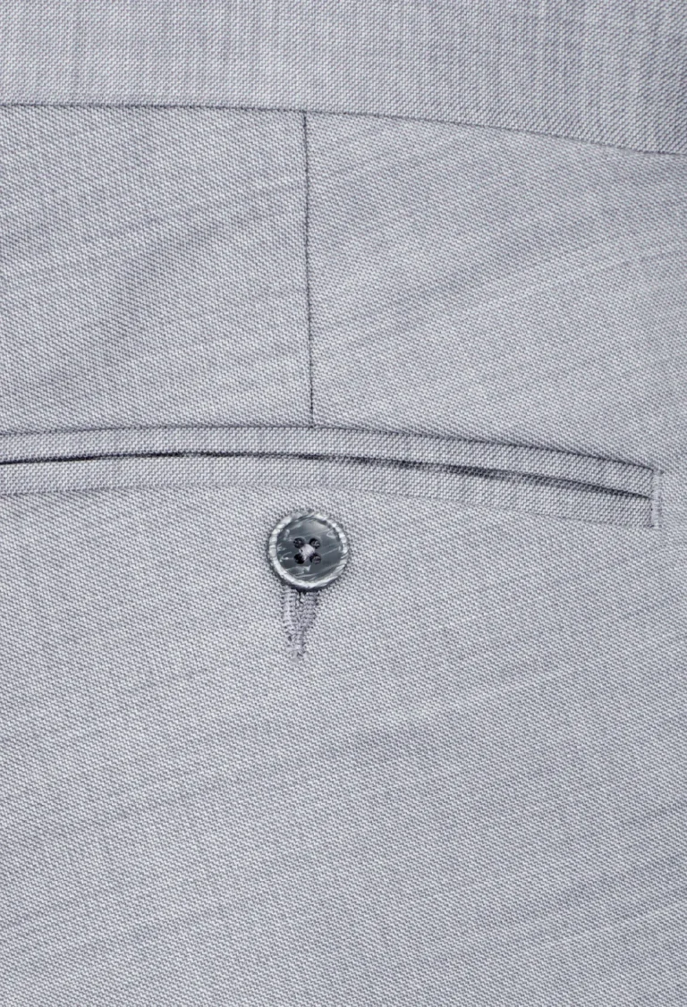 Eleganckie spodnie garniturowe w kolorze jasno-popielatym to niezbędny element męskiej garderoby. Wykonane z tkaniny z dużą ilością wełny 66% – gwarantują komfort noszenia, odpowiednią przewiewność oraz trwałość materiału. Posiadają w przodzie dwie kieszenie skośne z tyłu dwie kieszenie cięte, zaprasowane na kant z kolanówką, pasek z gurtem.