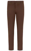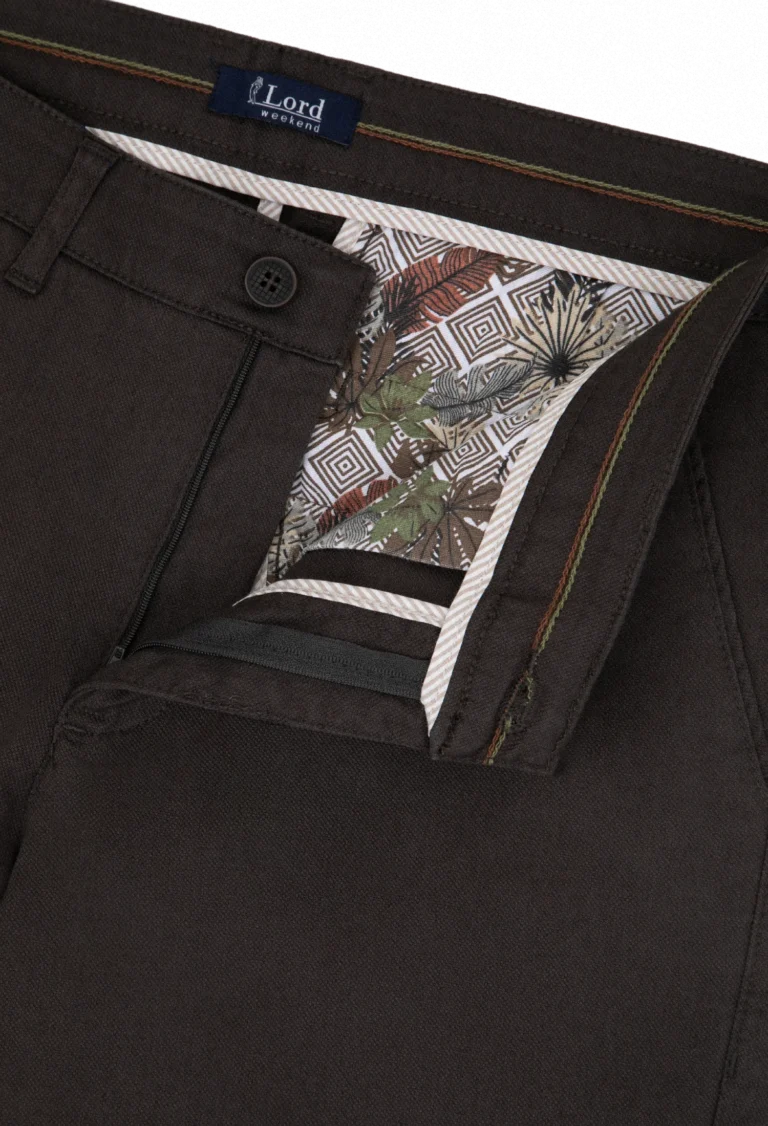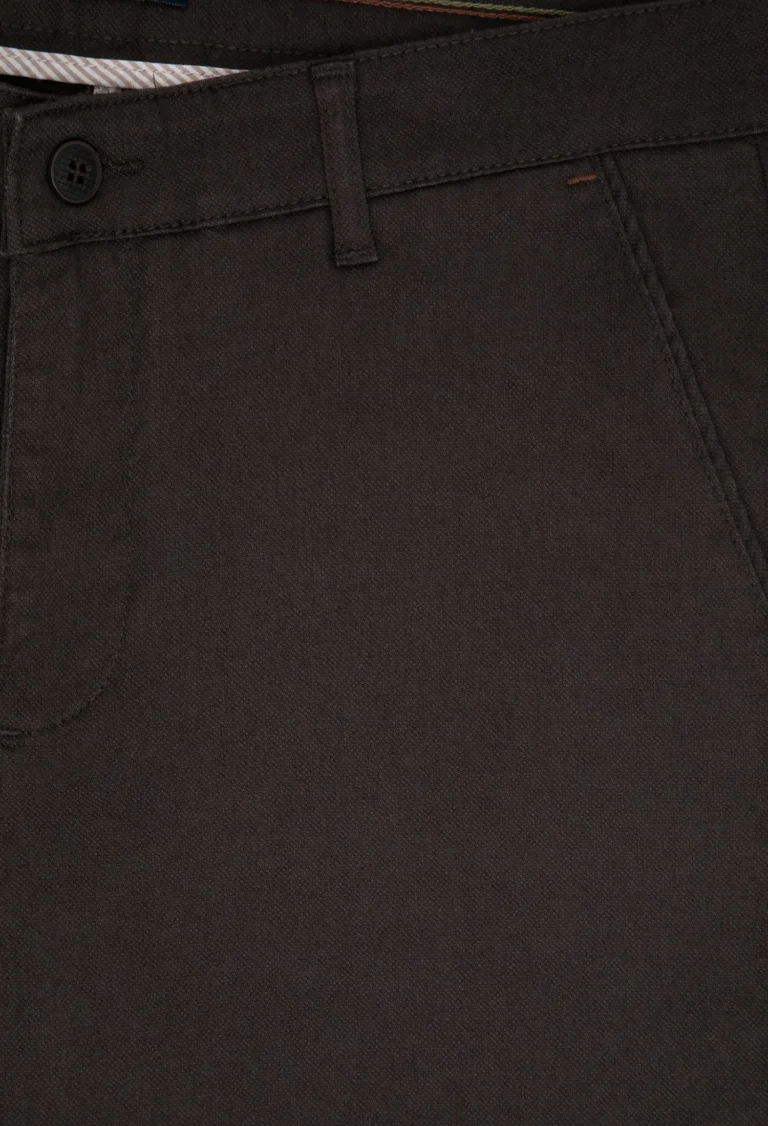 Spodnie męskie w kolorze brązowym z tkaniny strukturalnej, wykonane z wysokogatunkowej bawełny z domieszką elastanu, tkanina całoroczna. Spodnie doskonale pasujące do różnych stylizacji.