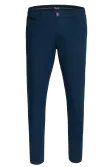 Spodnie męskie, tkanina gładka. Typowo letnia tkanina o niższej gramaturze, przewiewna, miła w dotyku. Wykonane z wysokiej jakości bawełny z dodatkiem elastanu, co wpływa niezwykle korzystnie na komfort użytkowania.