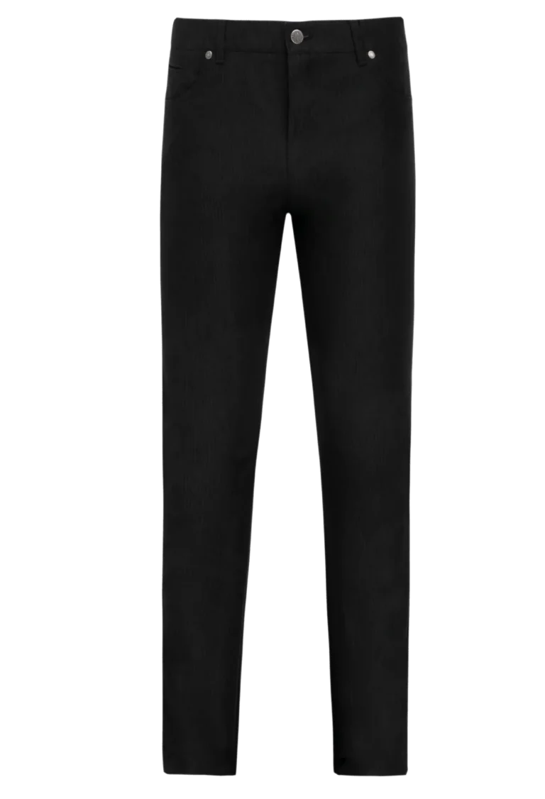Spodnie casualowe wykonane z tkaniny bawełnianej z dodatkiem wiskozy w delikatny prążek. Świetnie dopasowują się do sylwetki i stanowią alternatywę dla spodni klasycznych. Do spodni można spasować marynarkę z tej samej tkaniny o symbolu M-541.