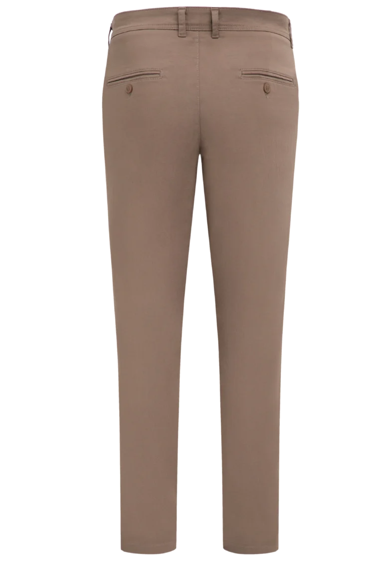 Spodnie męskie gładkie, wykonane z wysokiej jakości bawełny z dodatkiem elastanu co wpływa korzystnie na komfort użytkowania. Tkanina cieńsza, lekka i przewiewna. Spodnie idealne na lato, odporne na piling, nie odkształcają się podczas noszenia, ładnie dopasowują się do sylwetki.