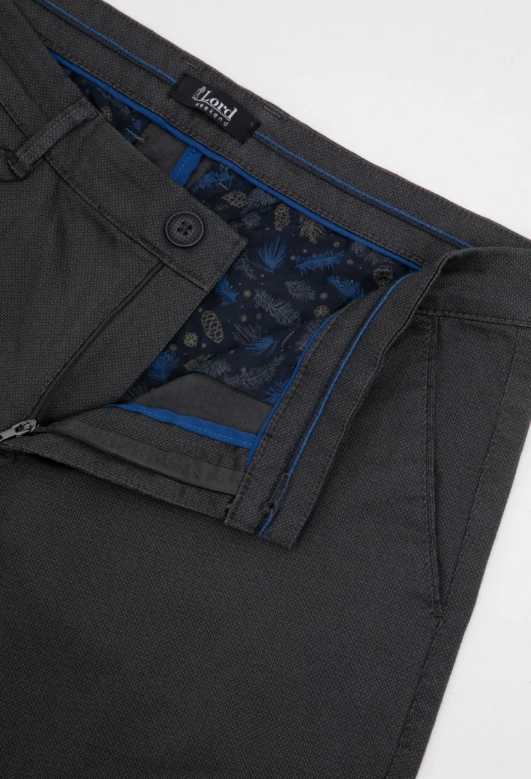 Spodnie casualowe wykonane z tkaniny bawełnianej w delikatny mikrowzór. Spodnie całoroczne miłe w dotyku. Świetnie dopasowują się do sylwetki i stanowią alternatywę dla spodni klasycznych.