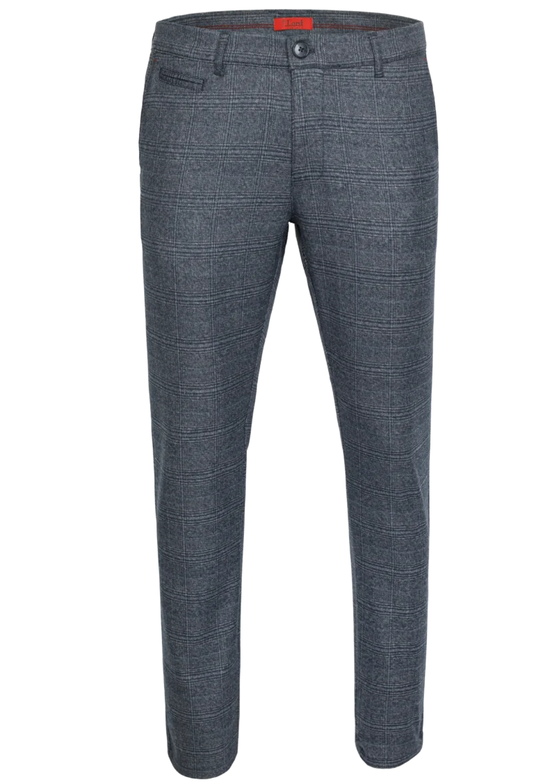 Jesiennozimowe spodnie w kratę niezmiennie modne w tym sezonie. To jeden z obowiązkowych elementów ubioru kolekcji męskiej. Wykonane z grubszej tkaniny o nazwie REMUS z dodatkiem elastanu. Model posiada dwie kieszenie boczne angielskie z dodatkową zegarówką, w tyle dwie dwuwypustkowe zapinane na guziki. Wszystkie kieszenie wzmocnione są kontrastowymi rygielkami. Spodnie są bardzo wygodne, ciepłe i miłe w dotyku. Świetnie zachowują się w noszeniu, dopasowują się do sylwetki i jednocześnie zapewniają swobodę ruchu.