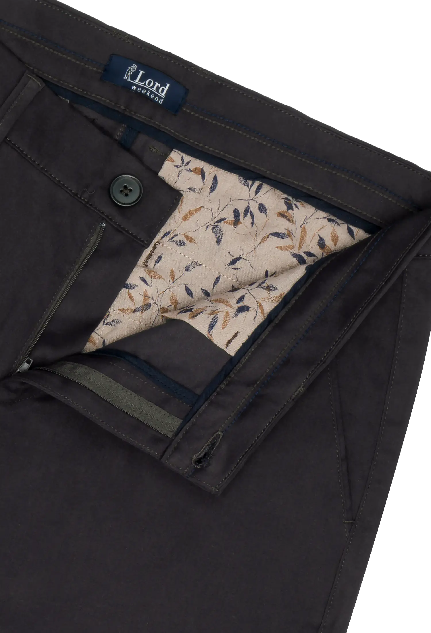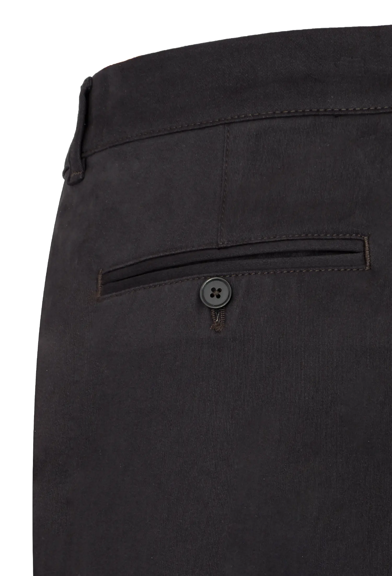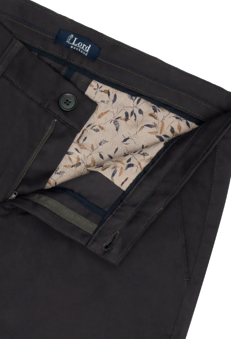 Spodnie męskie w kolorze bakłażanowym z delikatną nutą brązu wykonane z wysokogatunkowej bawełny z dodatkiem elastanu. Dzięki jego zawartości spodnie są bardzo wygodne i zapewniają dużą swobodę ruchu. Prosty, klasyczny krój nogawek dodaje im elegancji. Materiał jest miękki i przyjemny w dotyku.