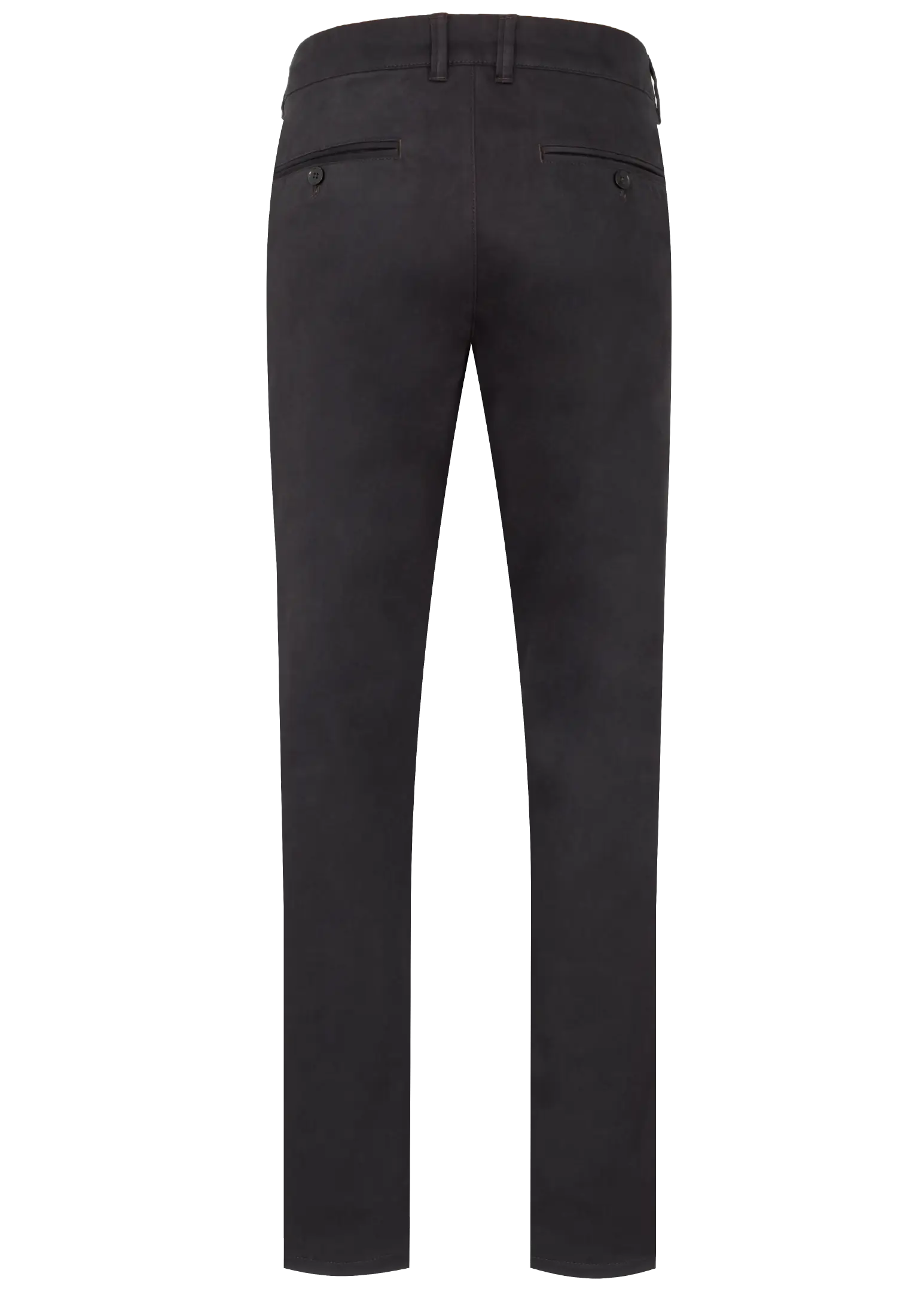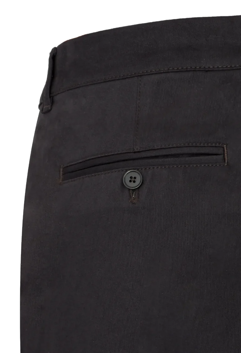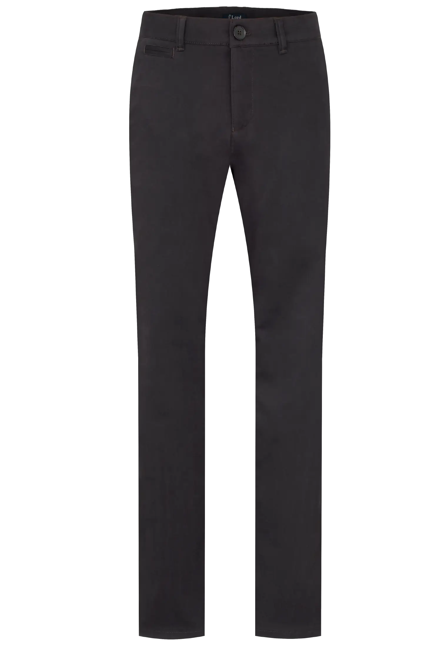 Spodnie męskie w kolorze bakłażanowym z delikatną nutą brązu wykonane z wysokogatunkowej bawełny z dodatkiem elastanu. Dzięki jego zawartości spodnie są bardzo wygodne i zapewniają dużą swobodę ruchu. Prosty, klasyczny krój nogawek dodaje im elegancji. Materiał jest miękki i przyjemny w dotyku.