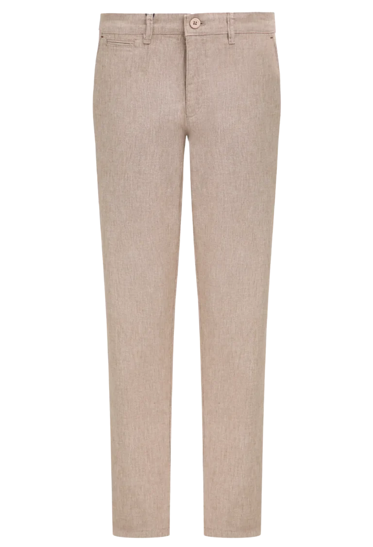 Spodnie męskie wykonane z wysokiej jakości tkaniny zawierającej ponad 80% bawełny i 15% lnu – łączy komfort noszenia z przewiewnością, idealną na cieplejsze dni. Prosty krój nogawek zapewnia uniwersalny styl, pasujący zarówno do codziennych, jak i bardziej eleganckich stylizacji. Spodnie są miękkie, wygodne i miłe w dotyku.