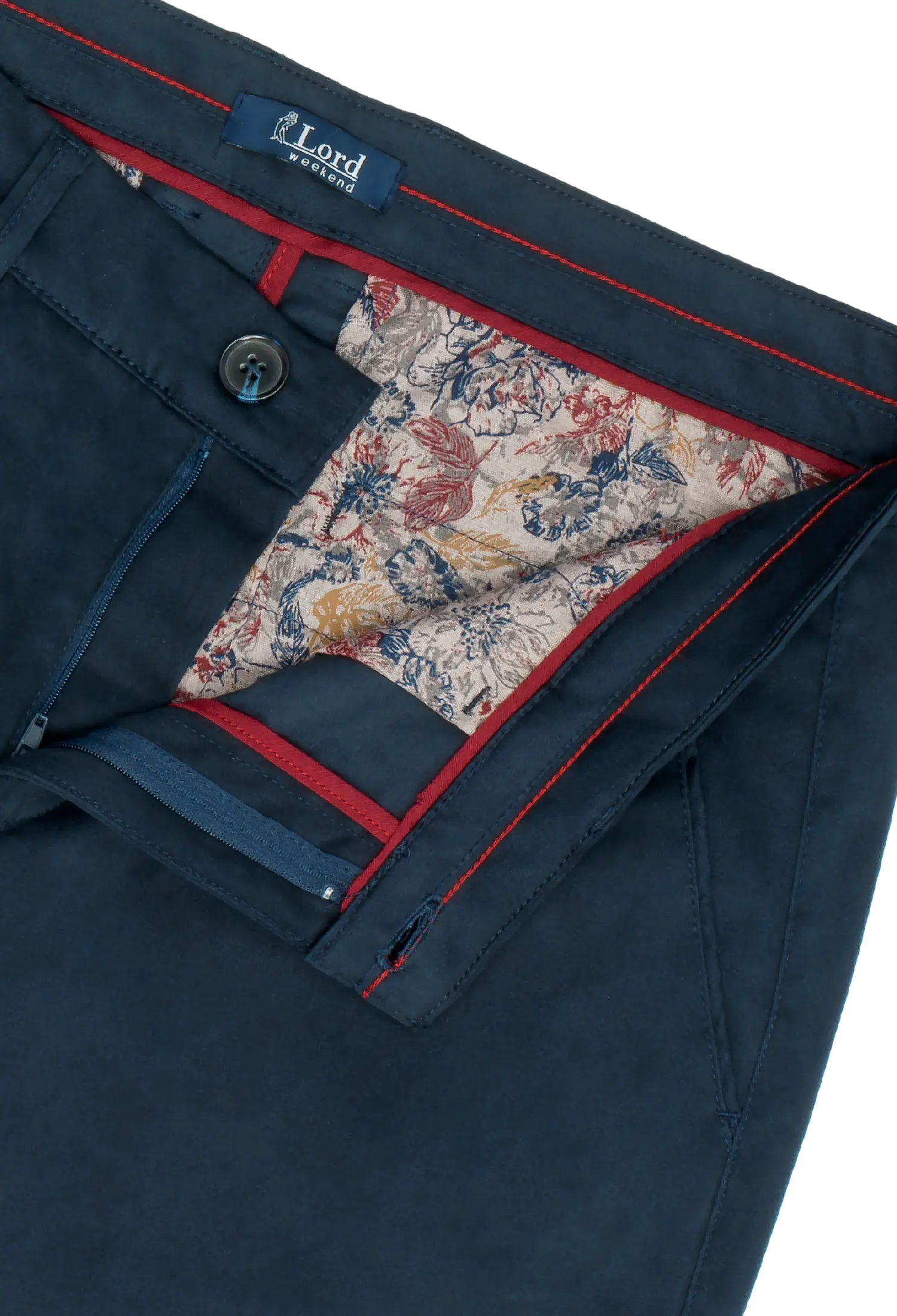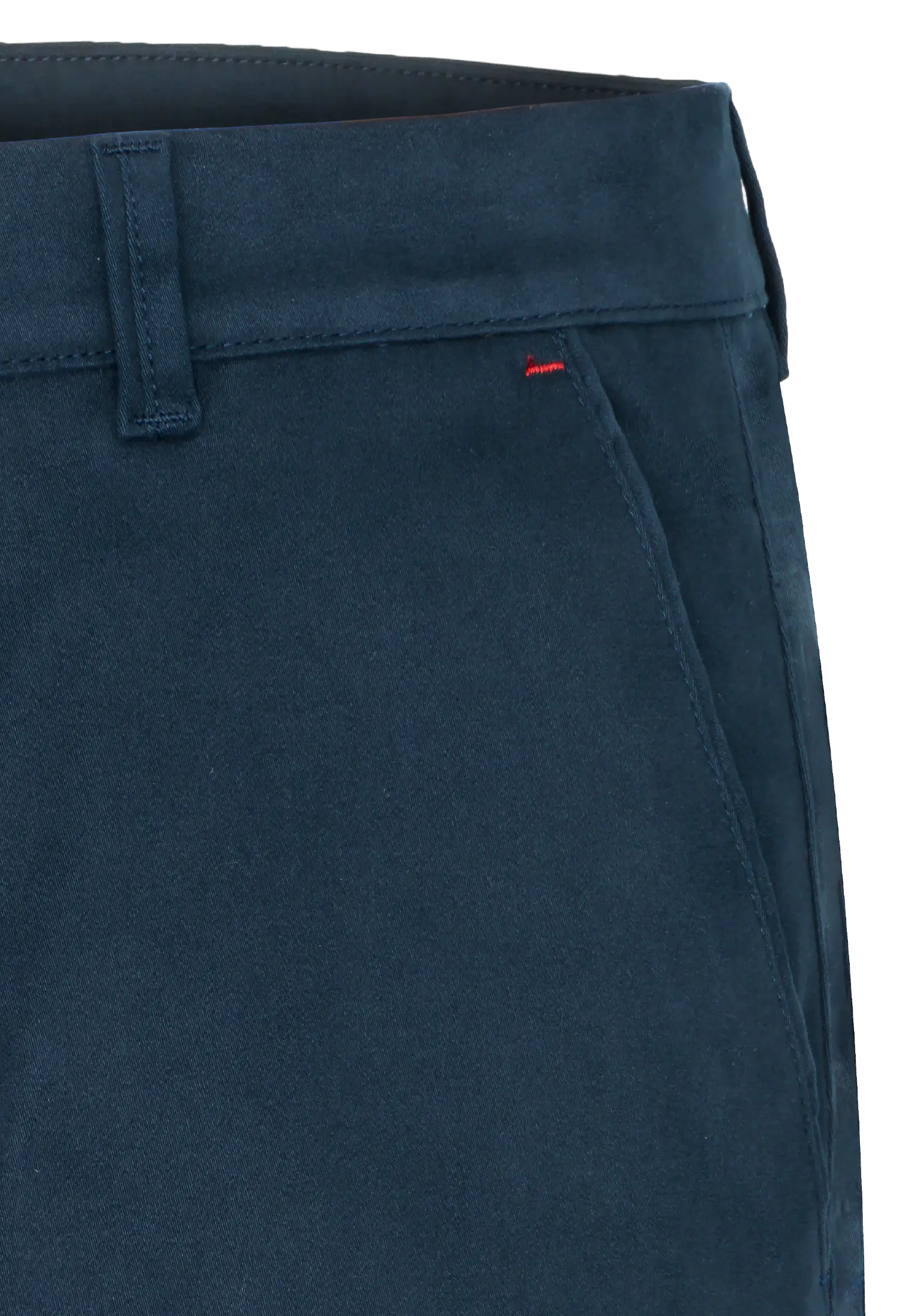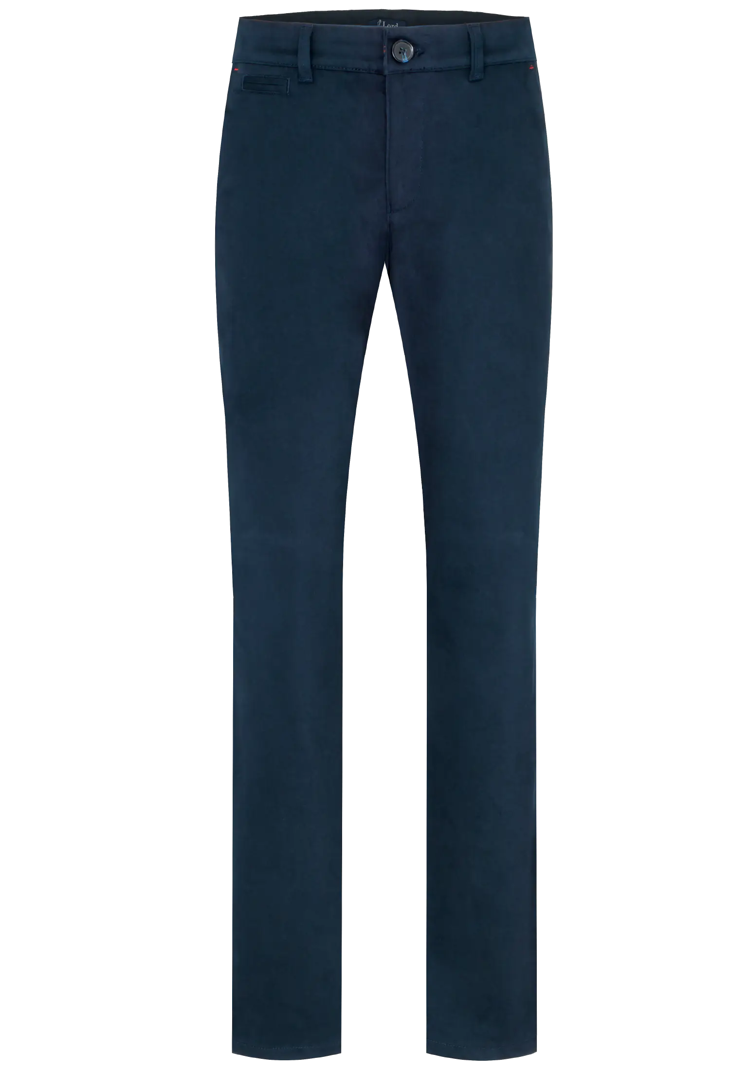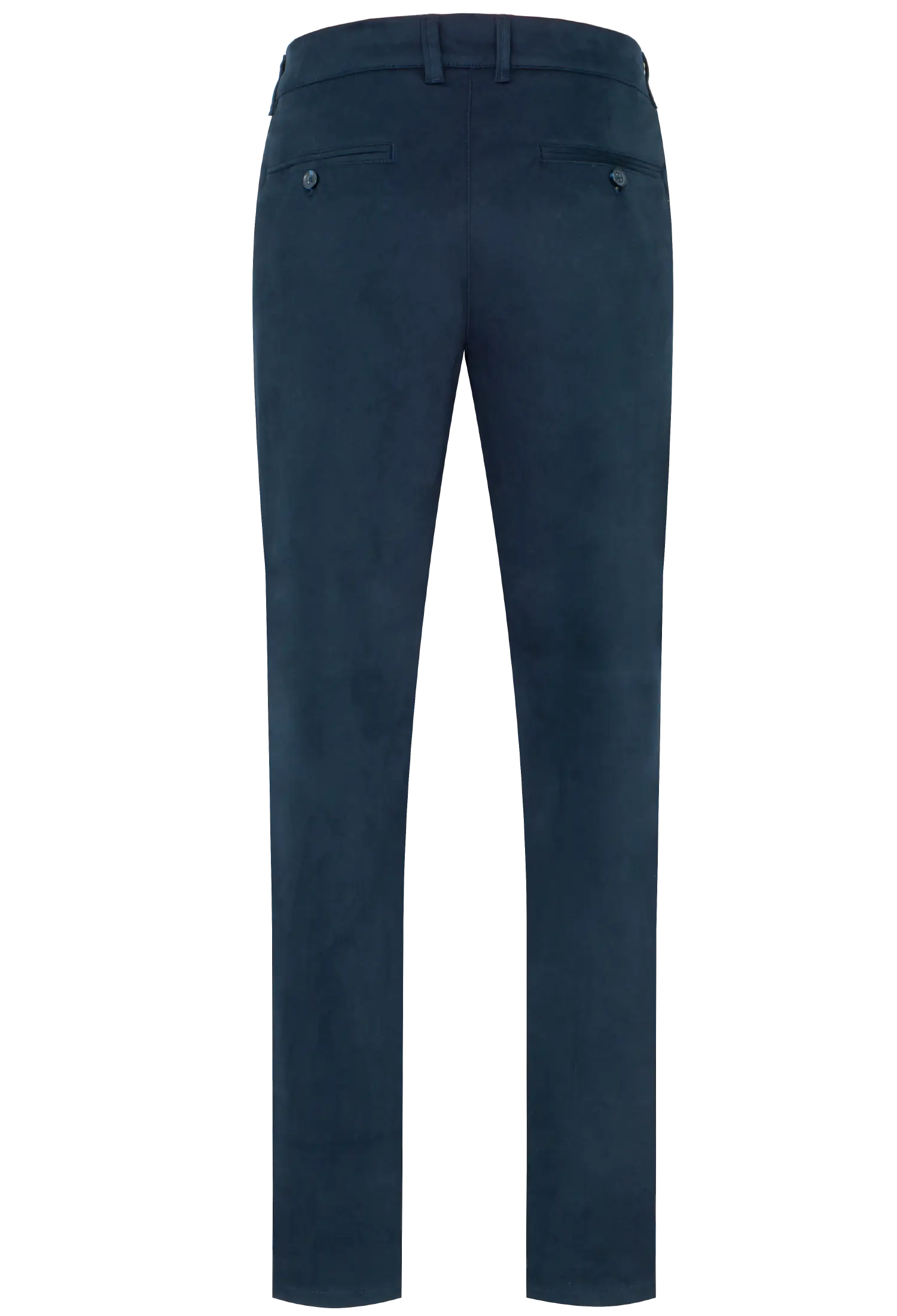 Spodnie męskie w kolorze granatowym wykonane z wysokogatunkowej bawełny z dodatkiem elastanu. Dzięki jego zawartości spodnie są bardzo wygodne i zapewniają dużą swobodę ruchu. Prosty, klasyczny krój nogawek dodaje im elegancji. Materiał jest miękki i przyjemny w dotyku.