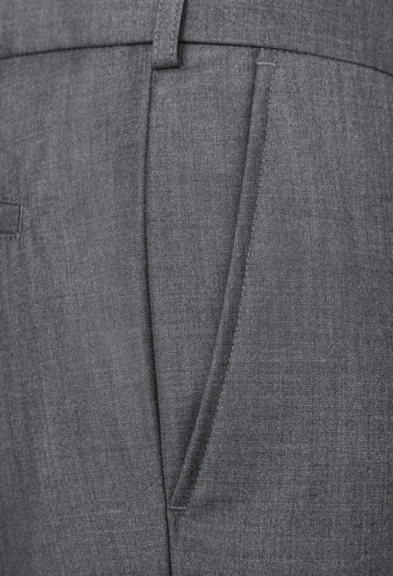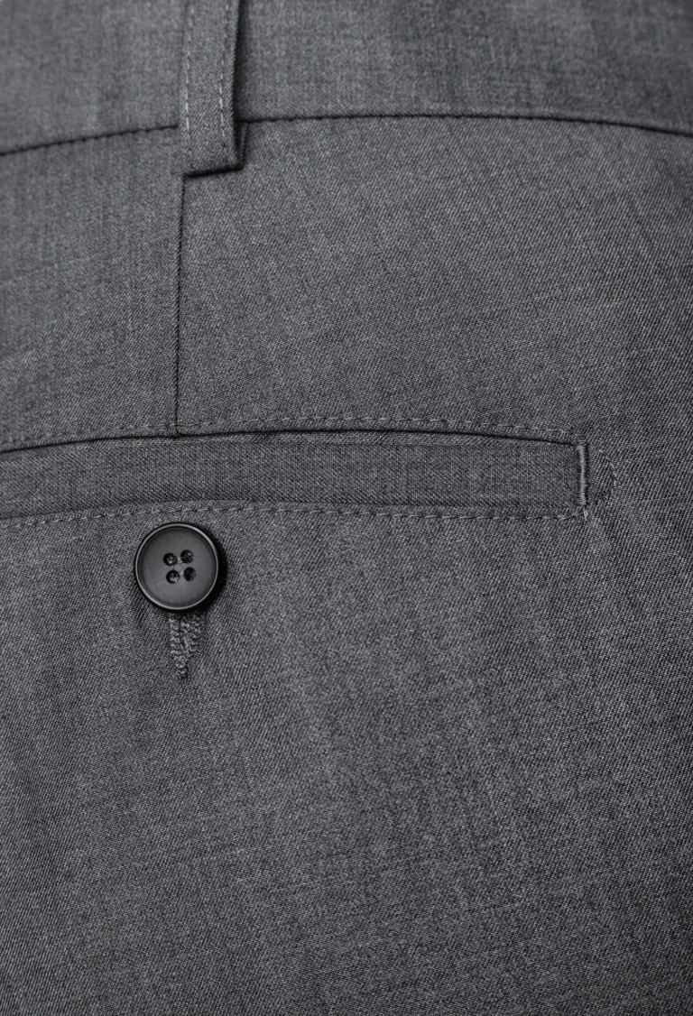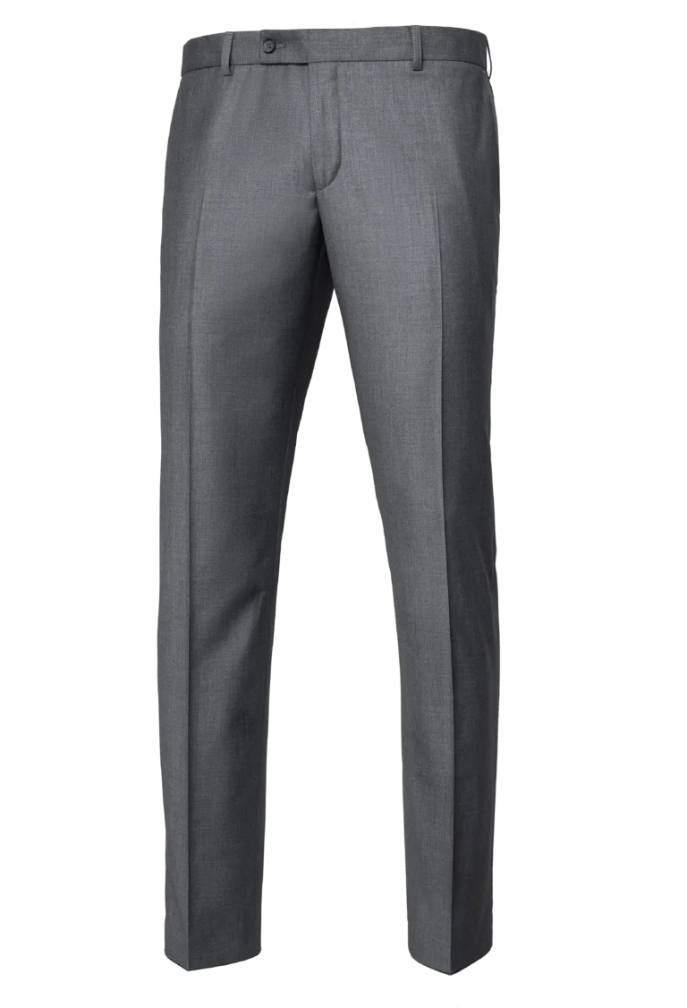 Spodnie męskie w kolorze jasno popielatym, całoroczne, krój wyszczuplony na kant z kolanówką, delikatnie zwężoną nogawką ku dołowi. Spodnie posiadają w przodzie dwie kieszenie skośne, z tyłu dwie kieszenie cięte zapinane na guzik, z haczykiem spodniowym. Spodnie pasują do wielu stylizacji.