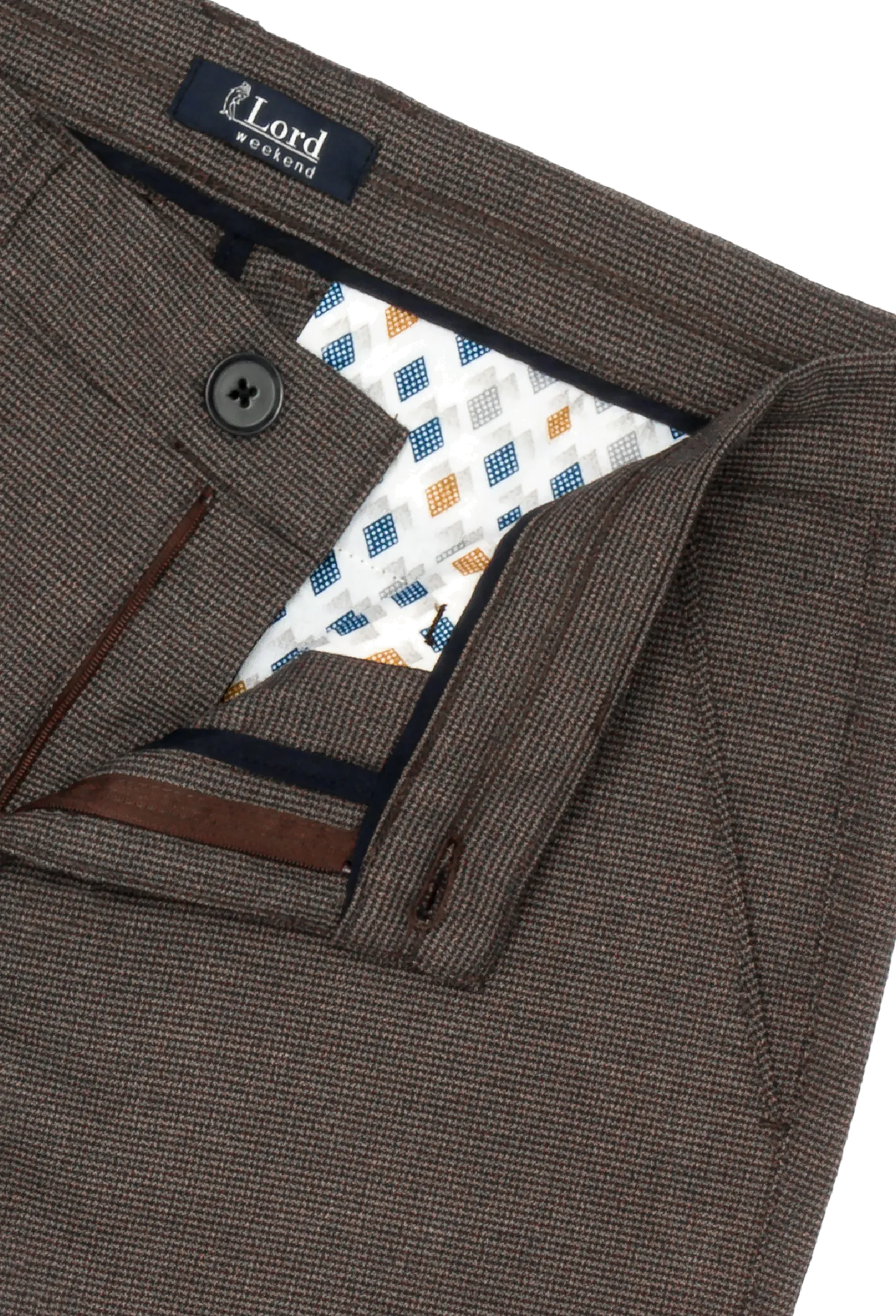 Spodnie męskie garniturowe, brązowe w kratkę Lord – Sp. T-66