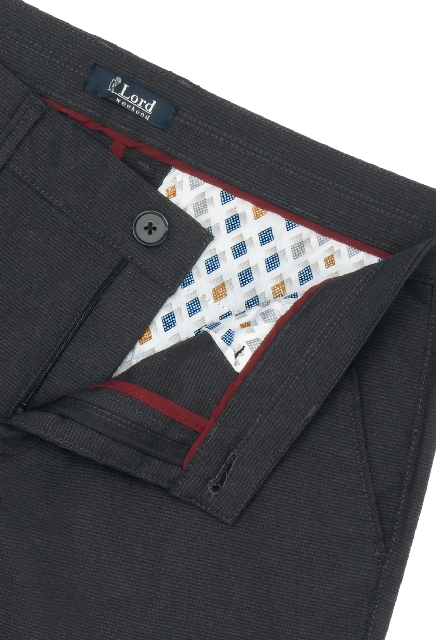 Spodnie męskie Lord – Chinos, kolor popielato-czarna kratka R-246