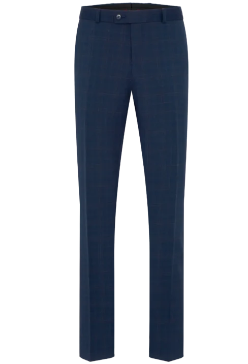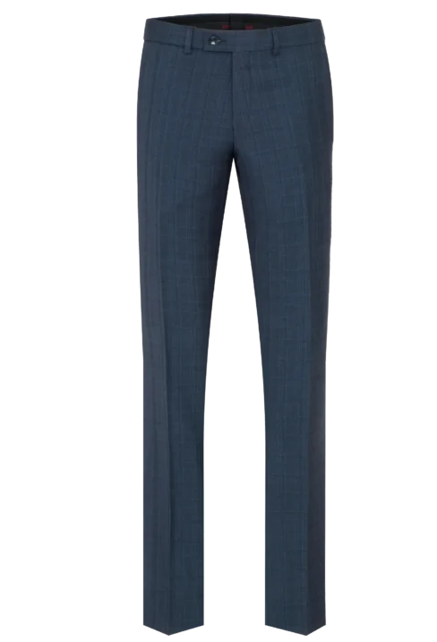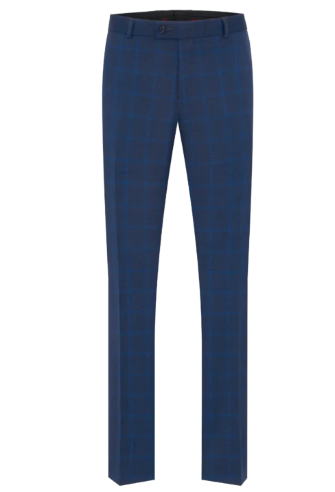 Spodnie męskie garniturowe, granatowo-niebieskie w kratkę Lord – Sp. T-49
